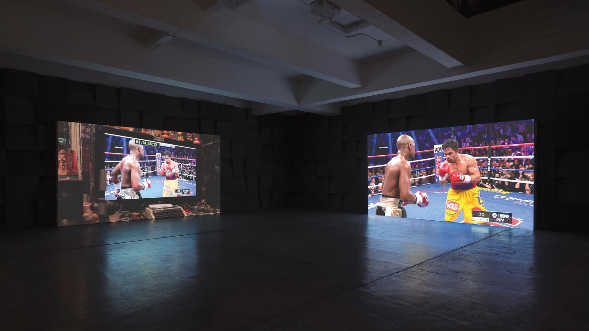 Match fit: Pfeiffer works in many media, but mostly referencing sporting venues, events and participants, including a boxing-themed video installation, Three Figures in a Room (2015-18) Courtesy of the artist and Paula Cooper Gallery
