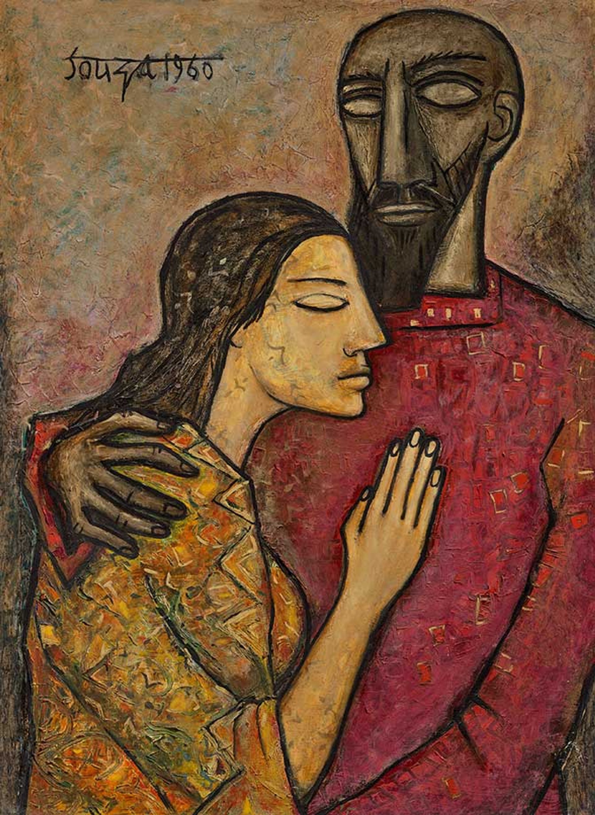Christie’s catalogue entry for this painting of two lovers by Francis Newton Souza is the first time it has been reproduced in colour. It was previously printed in black and white for the artist’s 1962 monograph, authored by Edwin Mullins. Later, it was included in a book by the famed Indian art historian Geeta Kapur, Contemporary Indian Artists (1978). The work was sold in the early 1960s by Gallery One—a pioneering London commercial gallery that ran between 1953 and 1963 and which introduced many Indian Modernists to the Western market. It was bought by the late Robin Howard, a British patron of Modern dance, whose descendants have consigned it to this sale. This year is the centenary of Souza’s birth. To mark the occasion, around one third of the lots in Christie’s South Asian Modern and contemporary evening sale are by the artist.