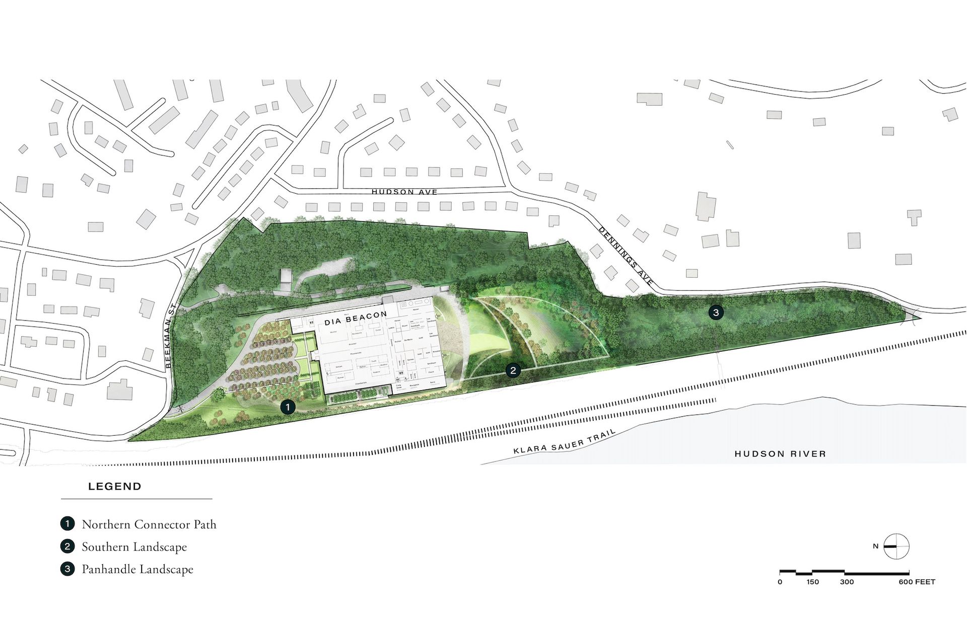 Rendering of Dia Beacon’s south landscape. Courtesy Studio Zewde, 2024