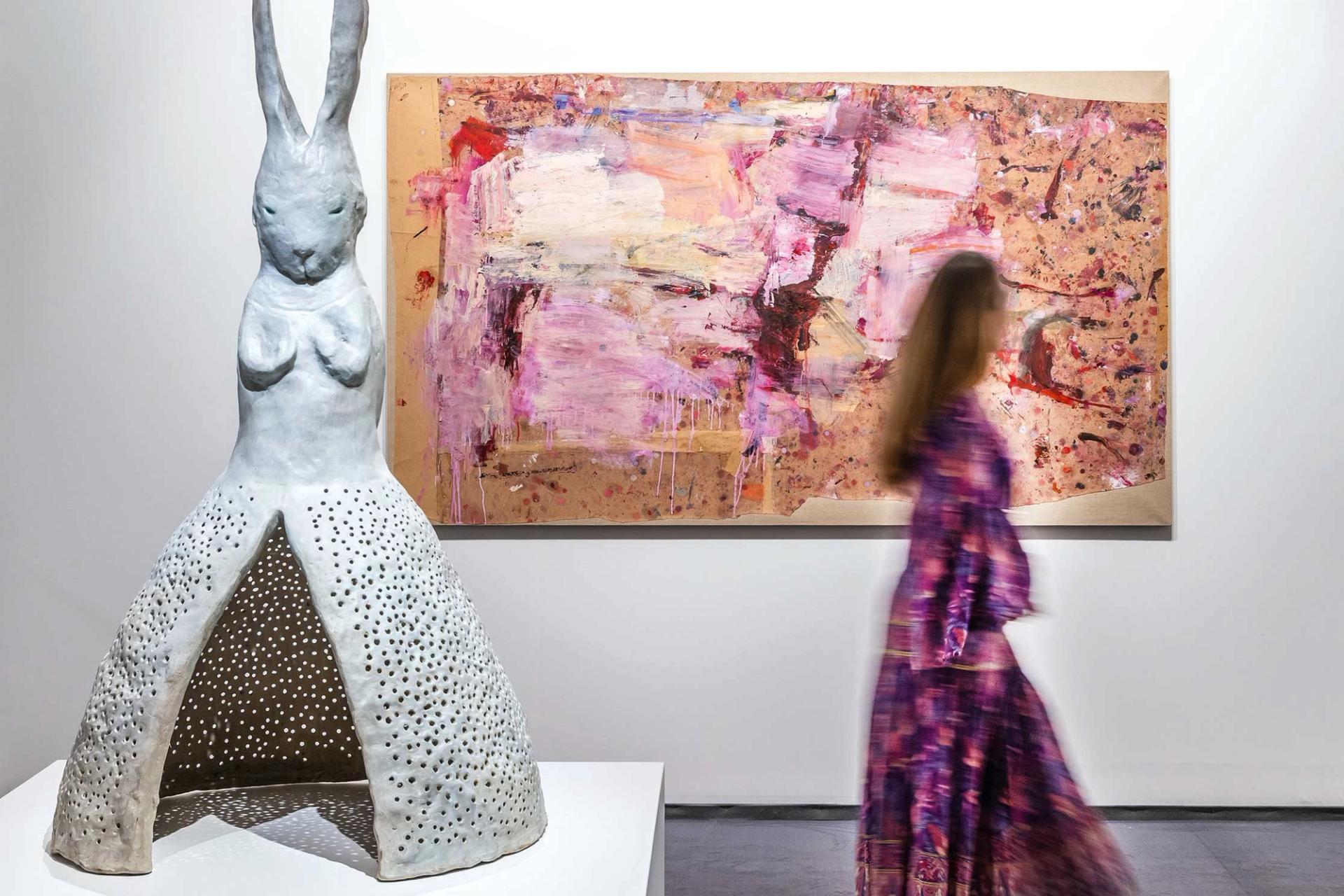 This year's fair features 55 galleries selling Modern and contemporary work, as Fergus McCaffrey gallery did at the 2023 edition, including pieces by Leiko Ikemura (sculpture) and Martha Jungwirth (painting)