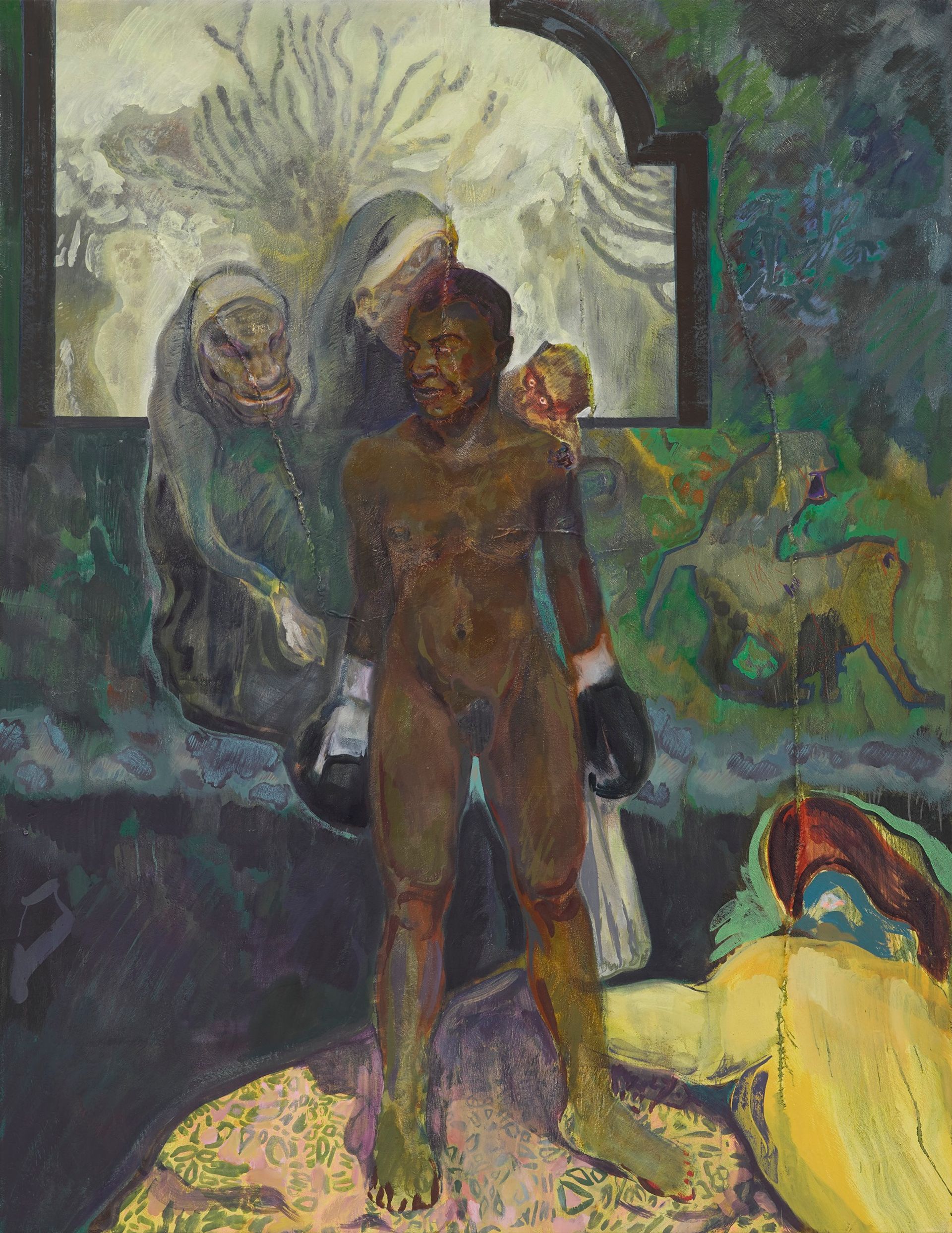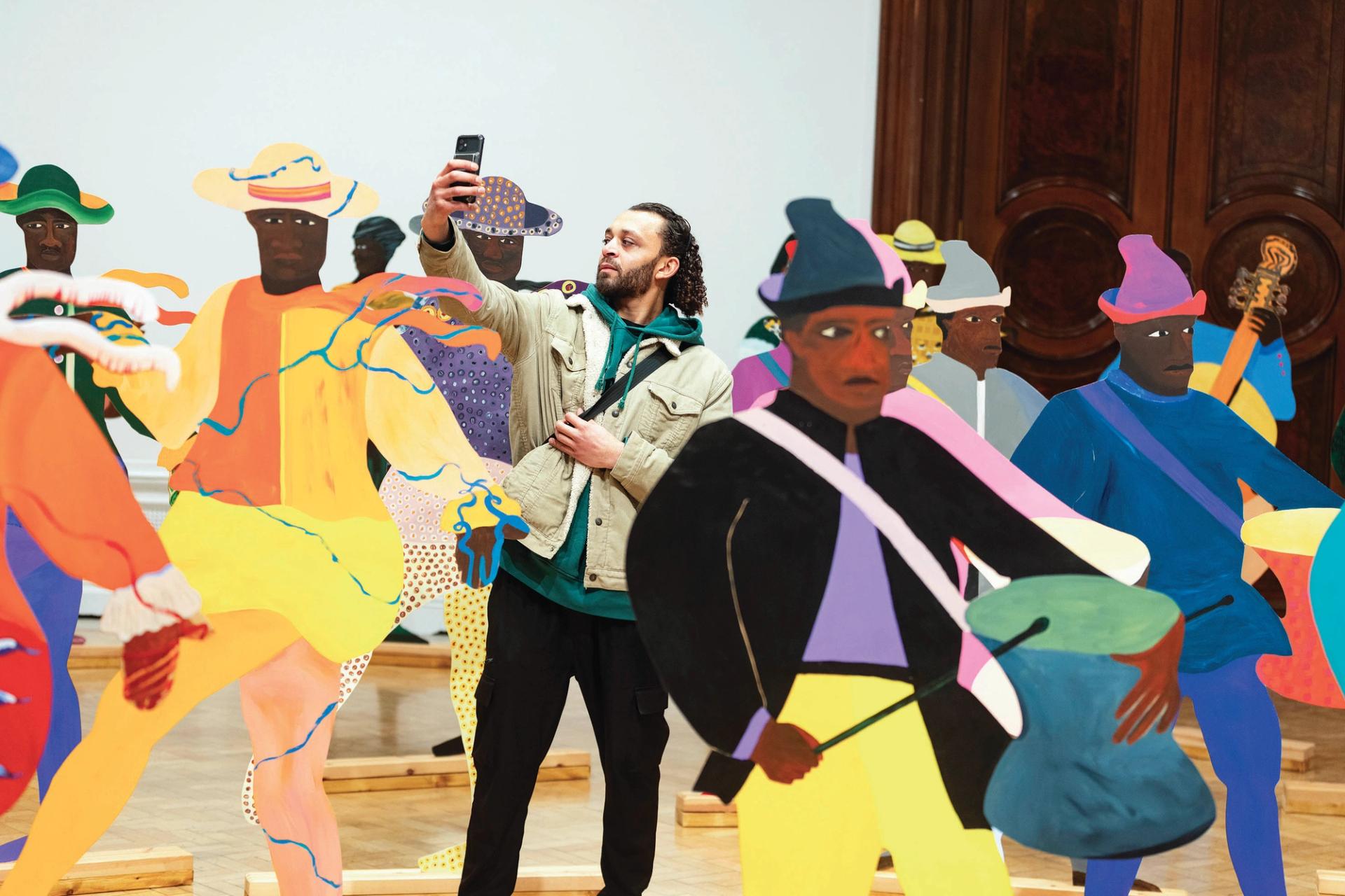 Throughout, notions of visibility and representation are interrogated. In her series Vanishing Point, Barbara Walker reduces the main subjects of classic paintings to outlines embossed into thick paper, but highlights their marginalised Black bit players by meticulously drawing them in graphite, while Kimathi Donkor uses the scale and language of classic Western history paintings to depict two major female leaders from the African diaspora—Queen Nanny, head of the 1700s guerrillas, and the American abolitionist Harriet Tubman—in dramatic action. Elsewhere other grim histories are revisited, whether in Noah Davis’s coruscating rendition of the Tulsa race massacre, Lubaina Himid’s restrained retelling of atrocities committed on the notorious slave ship Le Rodeur, or Michael Armitage’s fantastical but also fraught renditions of more recent upheavals in Kenya and Uganda.