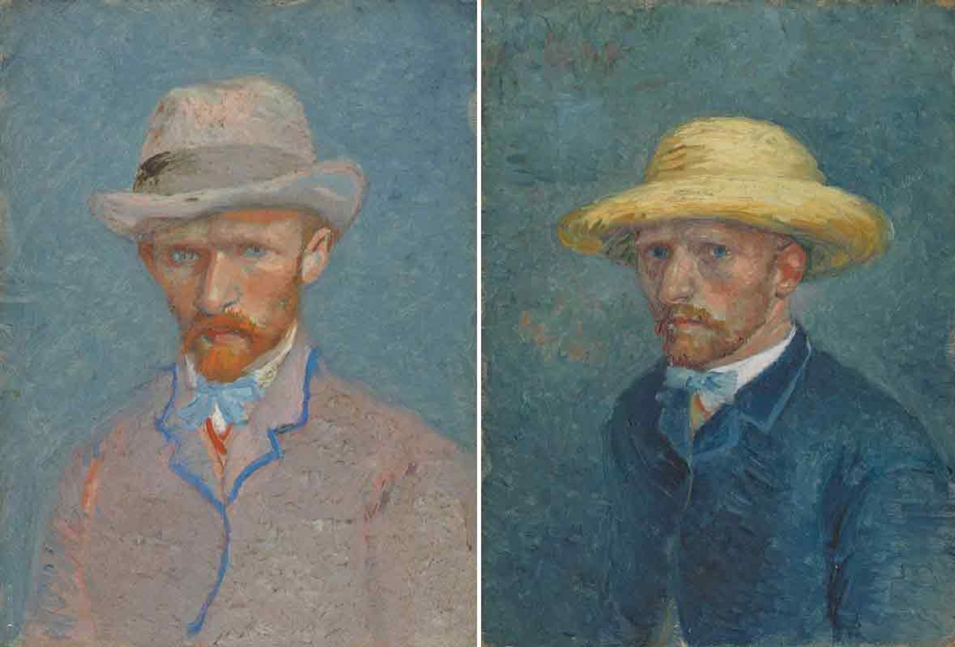 Van Gogh’s pair of portraits: one depicts Theo and the other Vincent, although there is no agreement on which is which (the paintings appear to portray different people). Both are now entitled Self-Portrait or Portrait of Theo van Gogh (summer 1887)