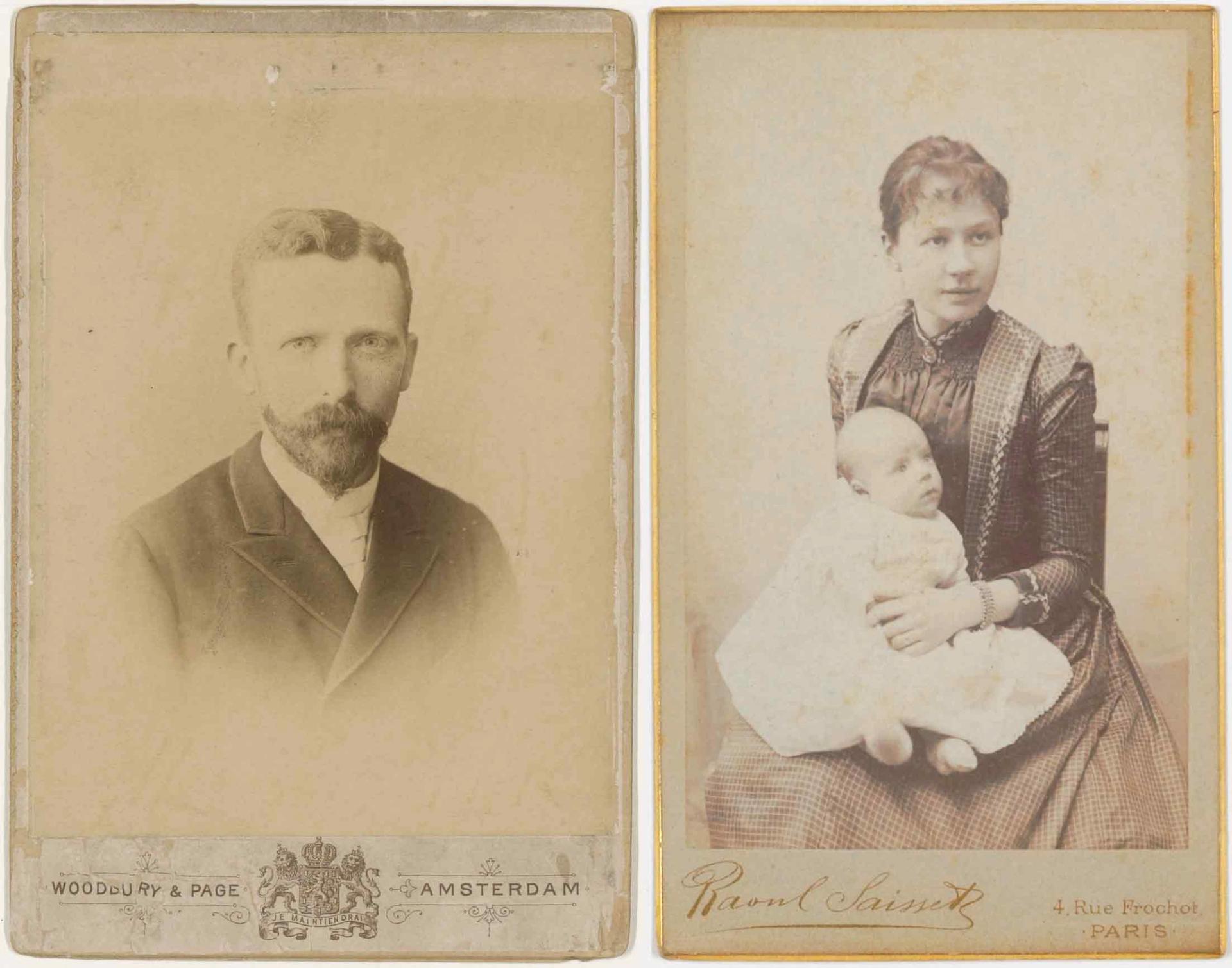 Photographs of Theo (1889) and Jo Bonger with their infant son Vincent (April 1890)