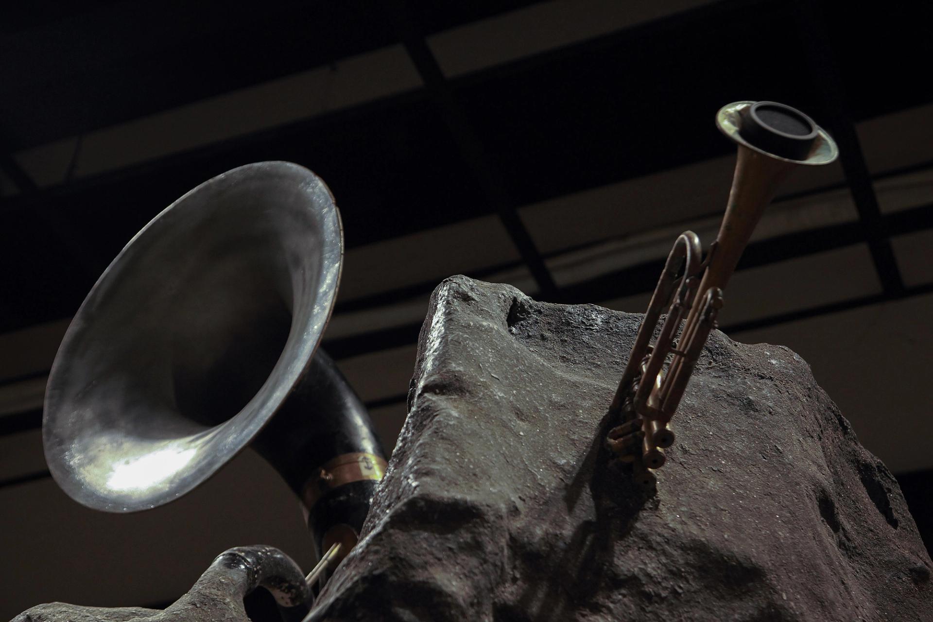 Detail of Kolorum (2024) by Mark Salvatus; the Philippines pavilion includes the artist's exploration of migrant musicians Photo: Elvert Bañares; image courtesy of NCCA - PAVB
