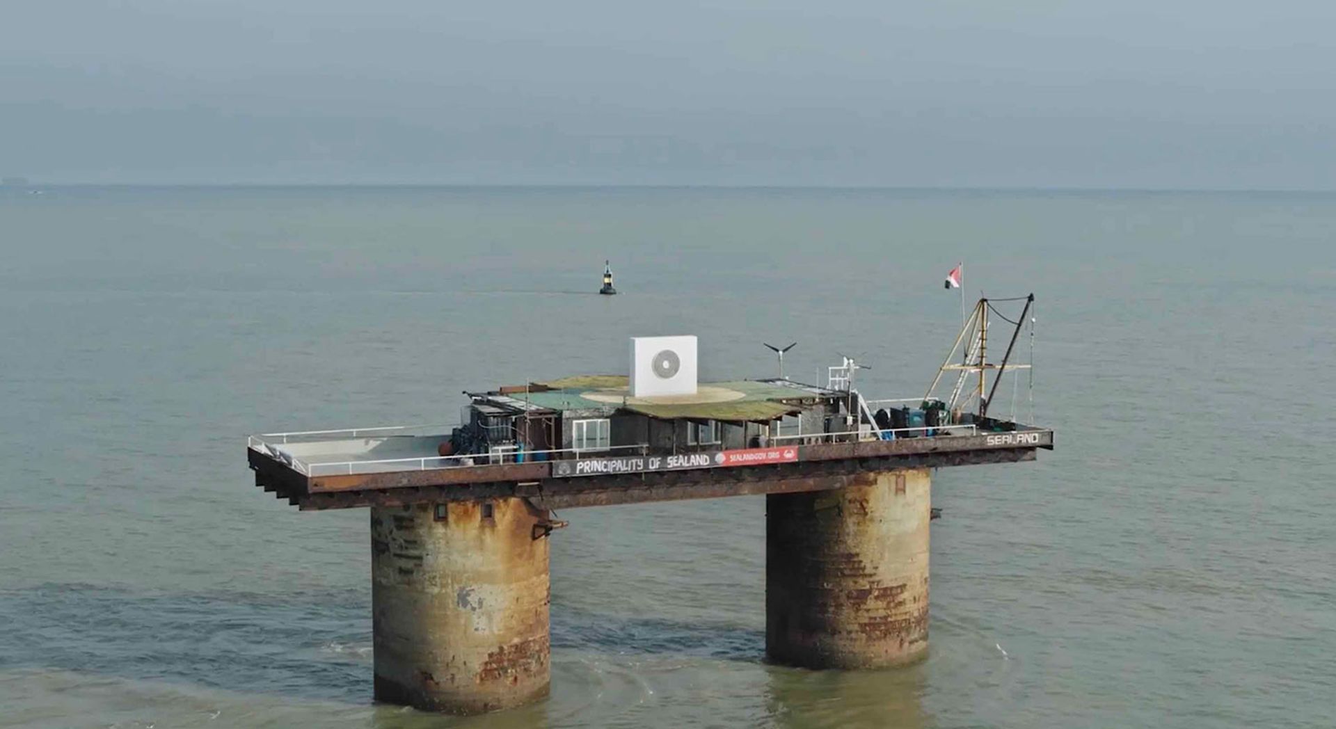 The painting element of Robert Alice's Block 34 (51.895167° N, 1.4805° E) from Portraits of a Mind (2019-present), installed on the principality of Sealand, in the English Channel Studio Robert Alice