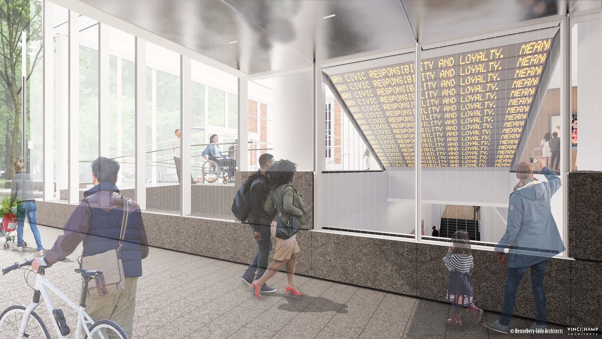 View of the Portland Art Museum’s community passageway between Southwest Park Avenue and Southwest 10th Avenue looking into the Mark Rothko Pavilion Rendering by Hennebery Eddy Architects and Vinci Hamp Architects