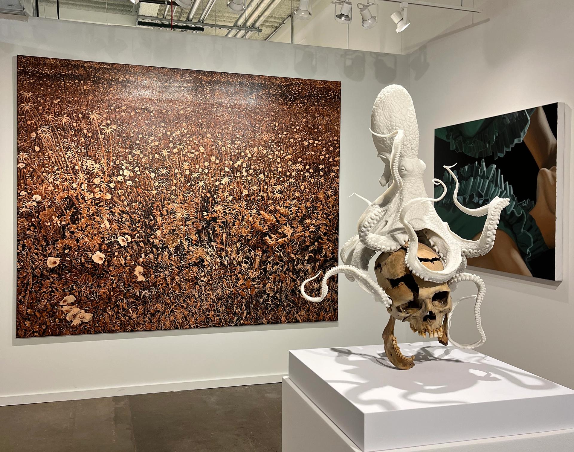 Seance (2019-23) by Erick Swenson at Cris Worley's stand, with views of work by Paul Manes and Kelli Vance in the background. Courtesy Cris Worley