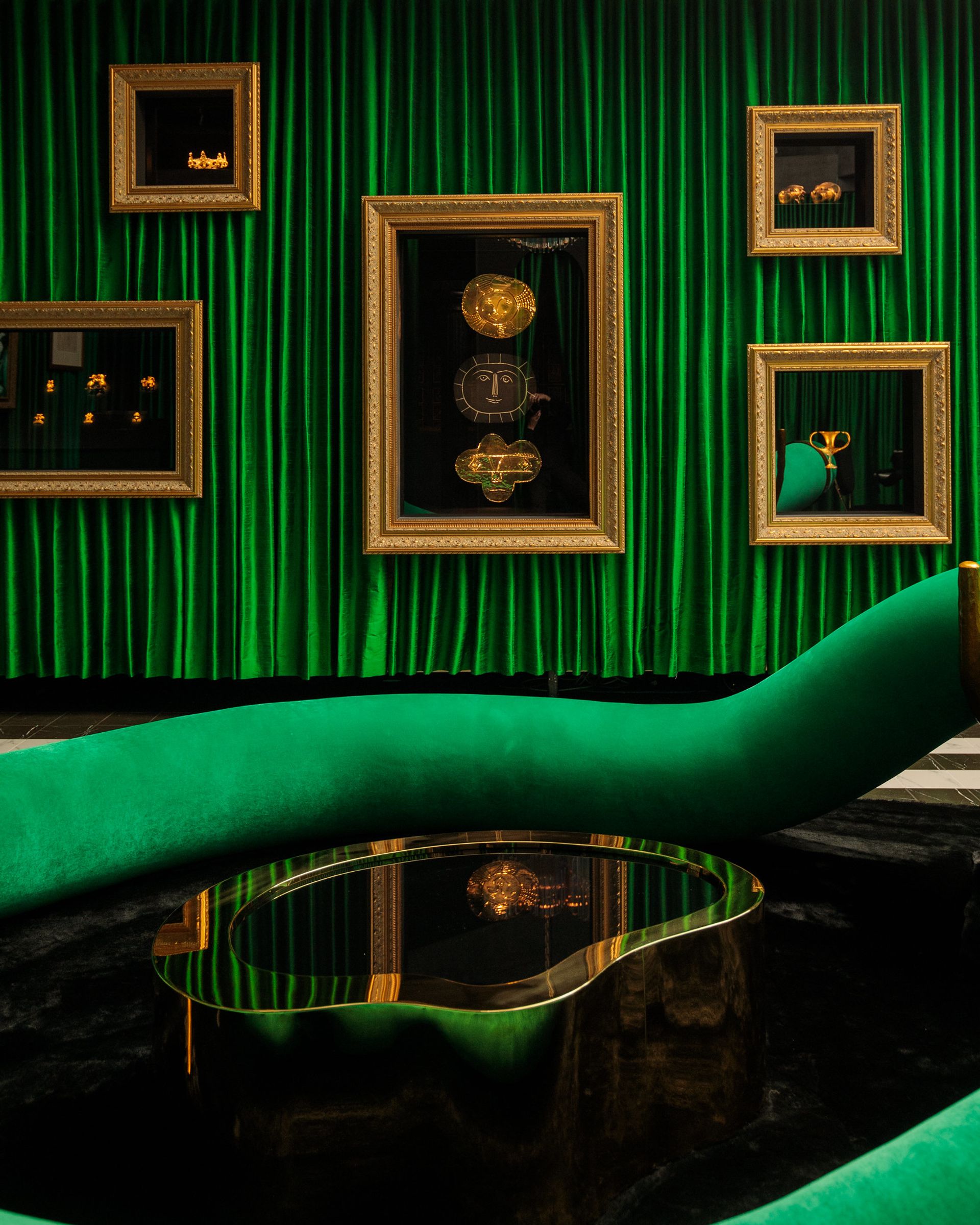 Mona’s Ladies Lounge is dimly lit, sumptuously decorated in emerald green, and admits only those who identify as women. The one exception is the butler, who serves champagne to women visitors who can sit on a phallus-shaped lounge.