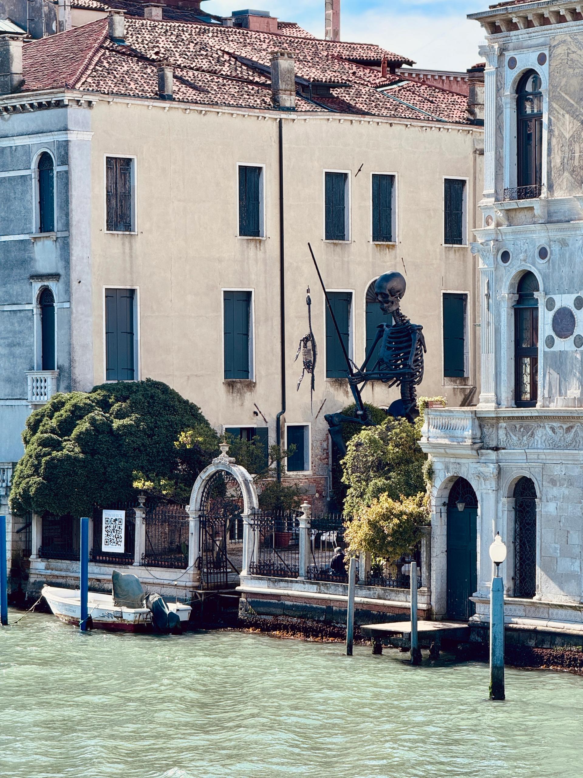 A ten-metre-tall human skeleton dangling the remains of a dinosaur from a fishing rod looms ominously over the Grand Canal, near the Ponte dell'Accademia. The work is by the Belgian artist Tom Herck and is part of his Once We Ruled the World series that, according to the organisers, “metaphorically emphasise[s] human ego and vanity”—which may also be the reason for placing such an eyesore in front of one of the most beautiful views in Venice. The premise seems to be that dinosaurs once ruled the world and now humans do—but not for much longer. Looking at this work, however, it would seem that going extinct might not be such a bad thing.