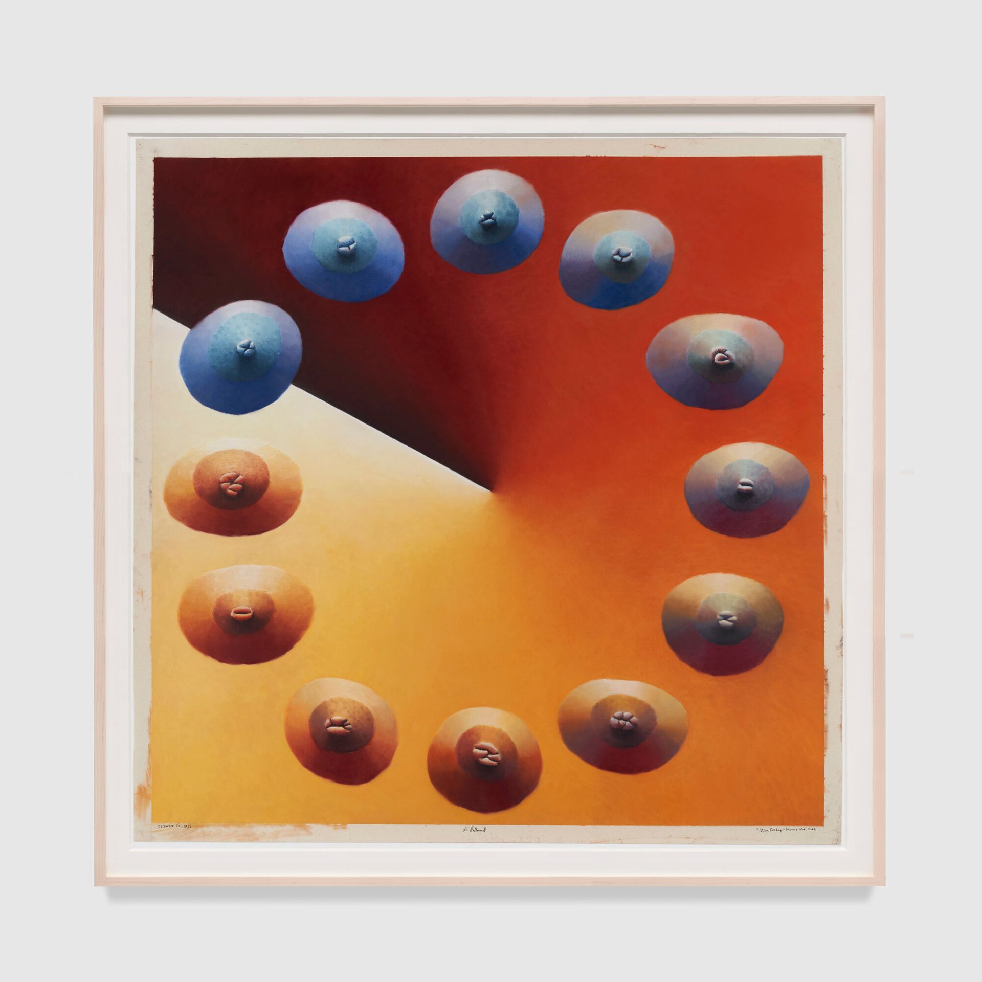 Hollowell’s voice—resonant, direct and hypnotic across painting, bas-relief sculpture and works on paper—melds geometry with blooming, organic forms, speaking to an elemental, shared understanding of a most personal undertaking. That has meant abandoning institutional convention. “My work comes out of my personal experience,” Hollowell says. “So it's very much an interior investigation of what I've experienced as a birthing body. The experience of giving birth is so abstract and intense, I felt like it couldn't be concretely depicted with a real body.”