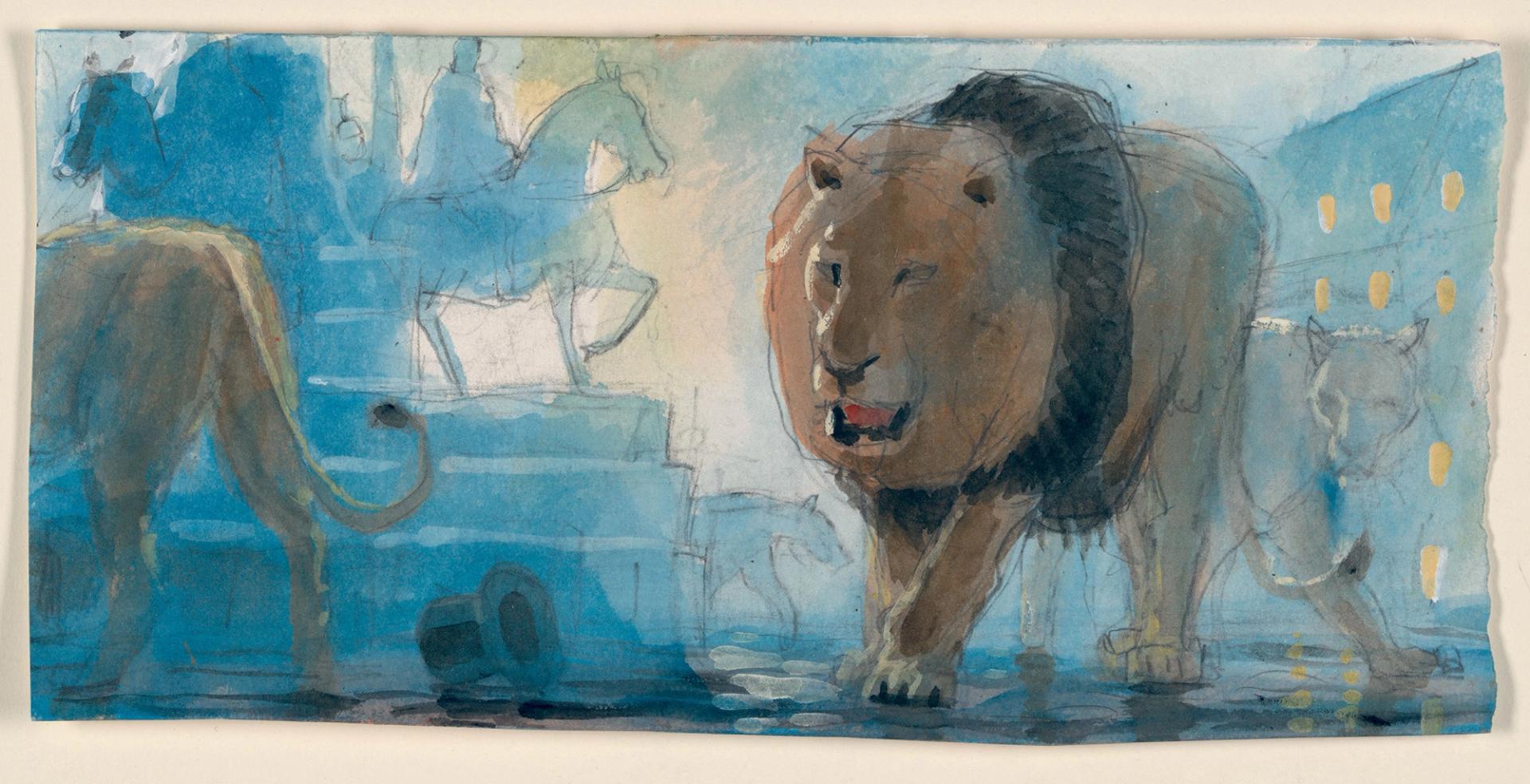 Several of the studies show lions. What does the motif symbolise in your work, like in Ars Gratia Artis (2017)?