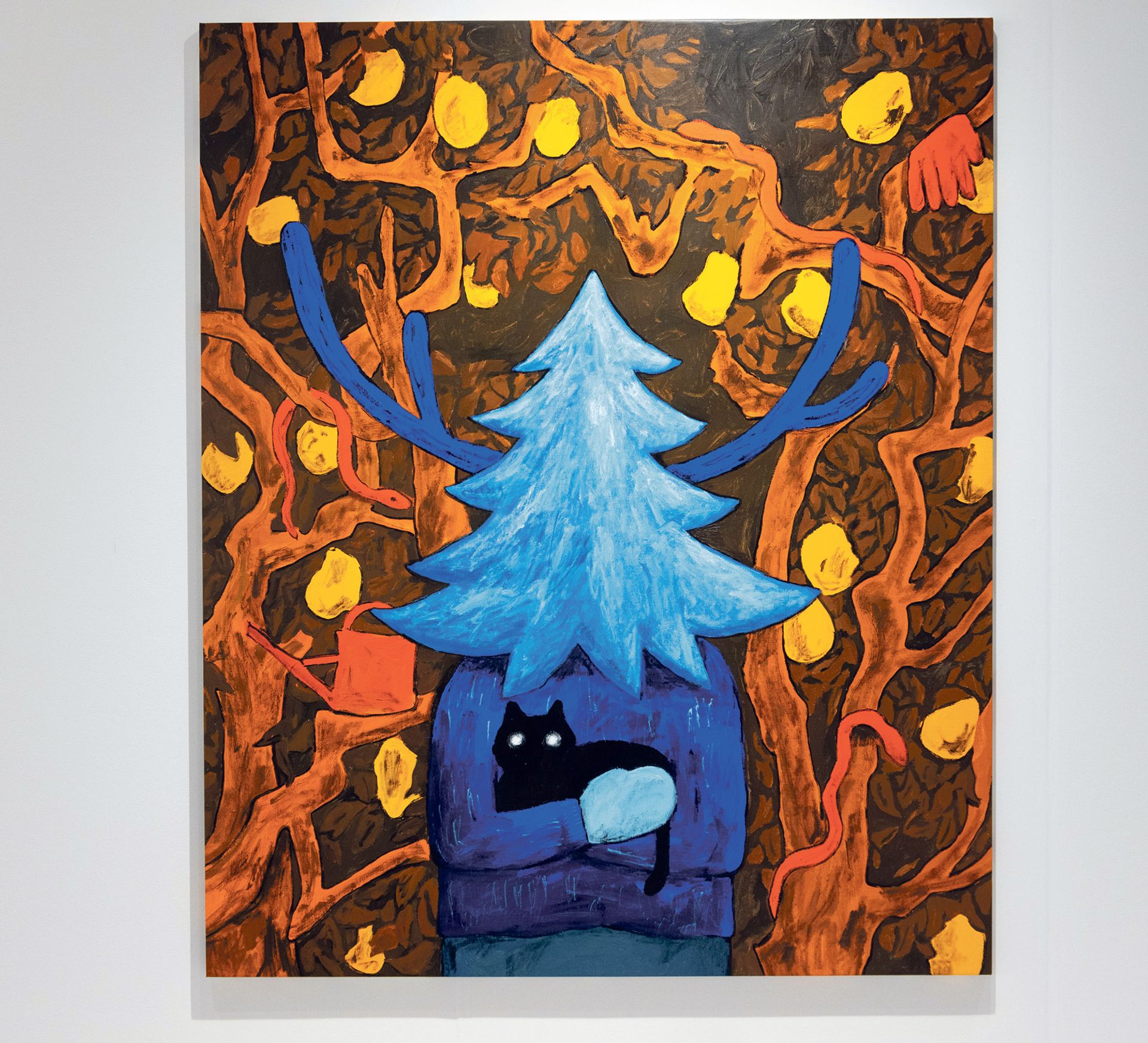 The Tokyo-based artist Yuichi Hirako “incorporates this tree-man figure into many of his works”, says The Modern Institute’s Calum Sutherland: “He’s probing the ambiguity and messiness of our relationship with nature.” In addition to holding a cat, the tree man in Green Master 90 is flanked by a pair of snakes, a biblical allusion to our precarious existence. The painting is priced under $50,000.