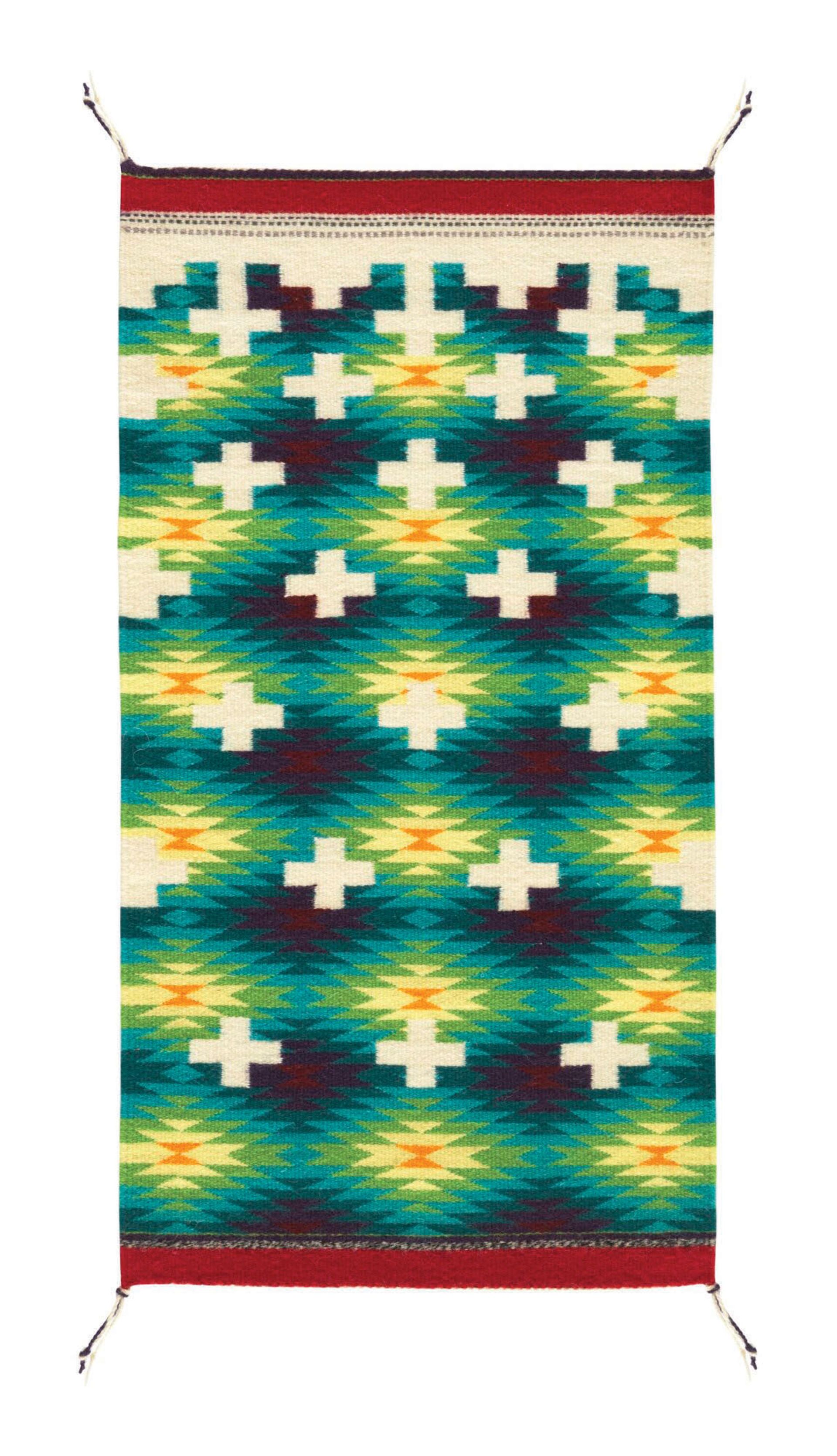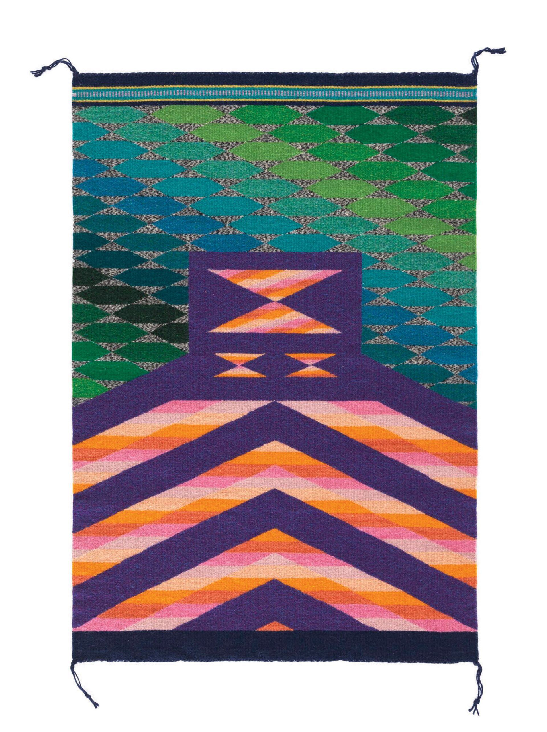 Growing up in the 1980s and 1990s, a lot of the textiles of that era were revolving around what was considered tradition, though at one point in our tribal history, a lot of those designs had actually been introduced by third parties or outside influences (whether it was trading posts, railroads, art galleries or other influences from off the reservation), so I was trying to see where the new traditions would take my generation. Early on, I was influenced by the 8-bit video games of my childhood; the way that I look at my loom and plan out my patterning is a similar aesthetic in terms of thinking in square pixels, and how the math and geometry of those types of games and the layout of the screen might translate into what I do on the loom.
