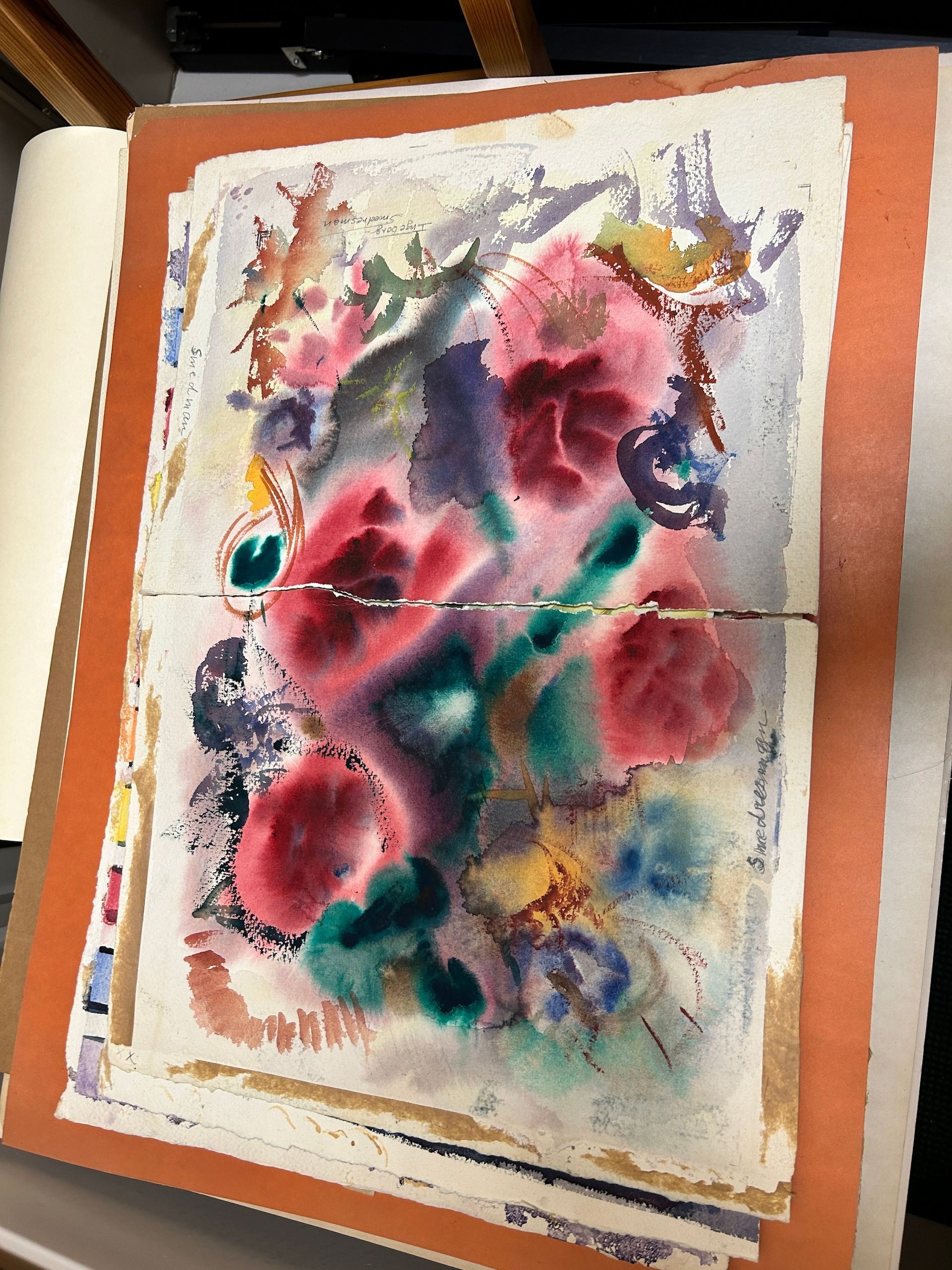 A watercolour by Ingeborg Freundlich Smedresman that has split in half Photo: Amanda Perez
