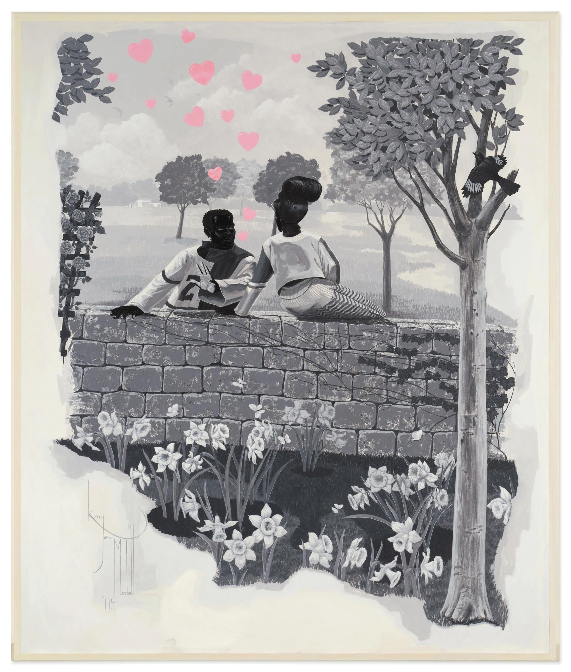 There were no surprises when it came to the event’s top seller. Vignette #6, a largely grayscale 2005 scene by Kerry James Marshall, hammered at $6.5m ($7.5m with fees) against a $7m to $10m expectation. No other lot saw the gavel fall for more than $2.9m ($3.6m with fees); the work that set that silver-medal mark was Functor Hideaway (2008), the only Brown canvas bidders were able to compete for tonight. The hammer price landed almost exactly in the middle of the painting’s $2.5m to $3.5m estimate range.