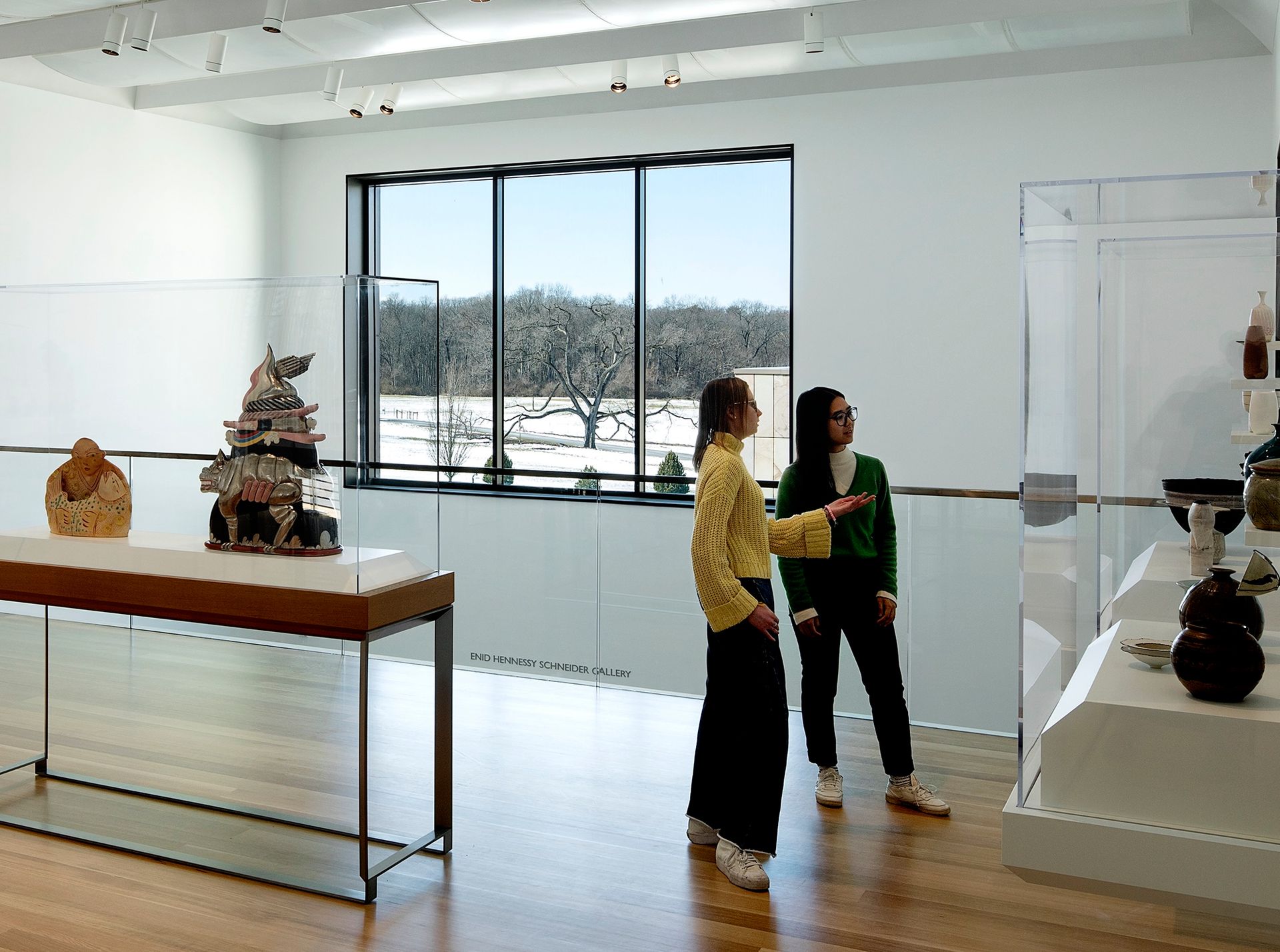 The ceramics gallery at the Palmer Museum of Art, with a view of the arboretum Photo: © Jeremy Bittermann/JSBA