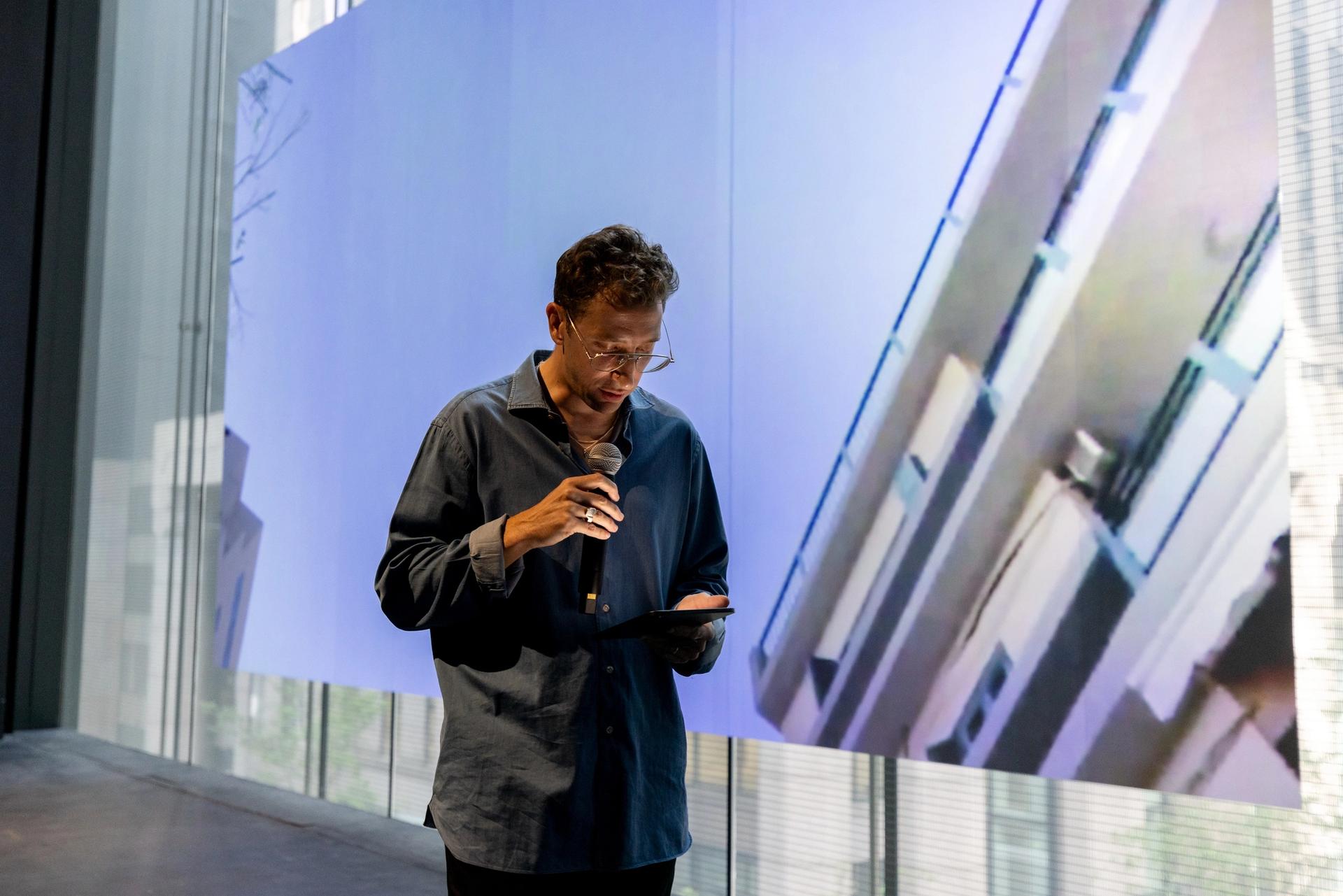 Lawrence Abu Hamdan, Air Pressure (2021), documentation of the performance at the Museum of Modern Art, New York in 2023 Image: Courtesy of the artist and MoMA