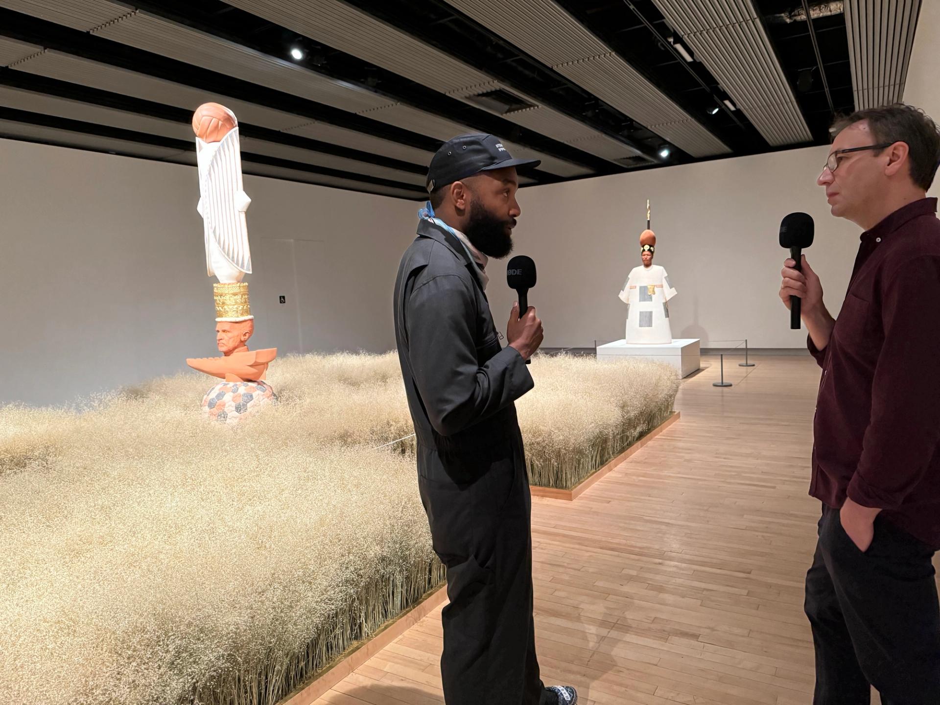 Tavares Strachan speaking to the Week in Art‘s host Ben Luke at the exhibition