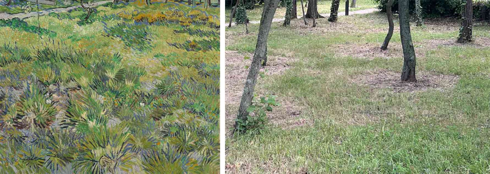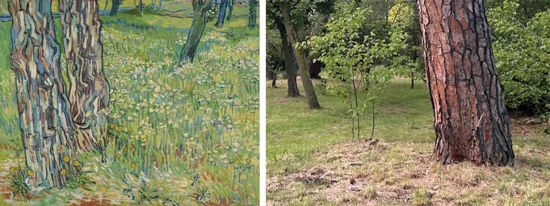 Van Gogh’s Tree Trunks in the Grass (April-May 1890) and photograph (April 2024)