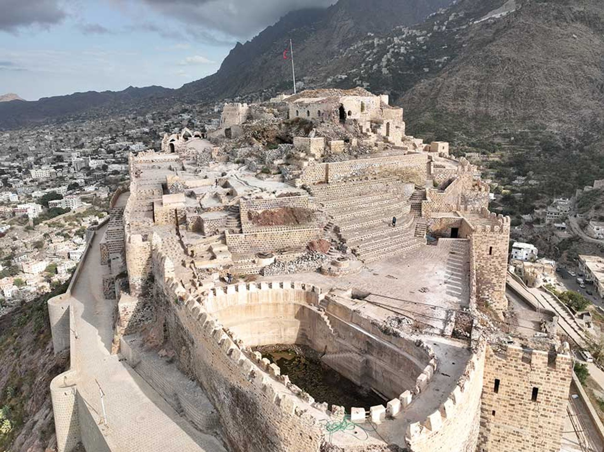 Believed to date from the 11th century, the castle overlooks Taiz from rocky highlands about 1,500m above sea level. Pre-Islamic archaeological finds, such as pottery statues offered to temple gods and evidence of a temple uncovered during excavations in the late 20th and early 21st centuries, suggest its origins may be older. The fort has played a key role throughout Yemen’s history and was used by various ruling dynasties over the centuries.