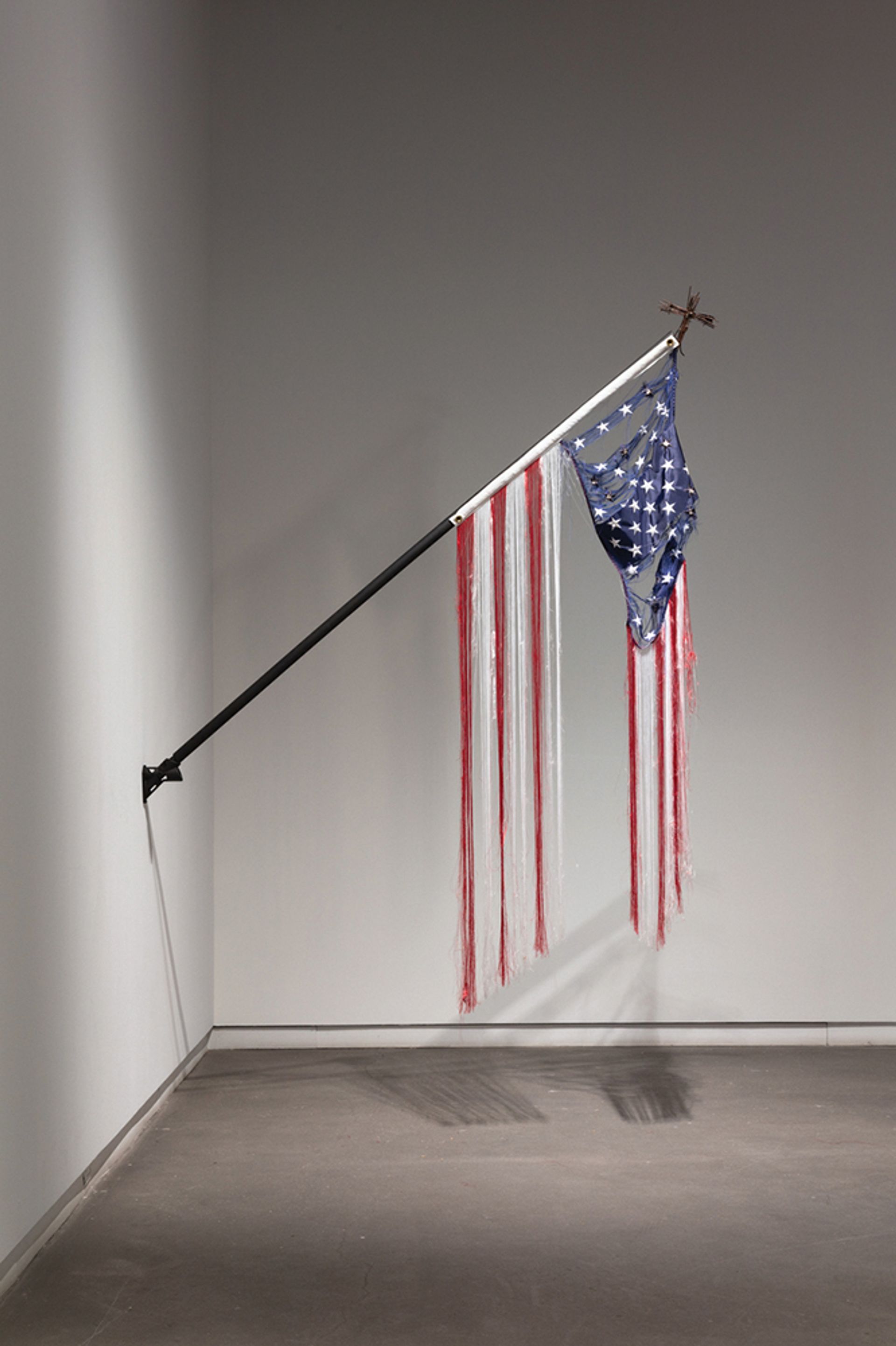 Clark’s Moral Disengagement (2014-17), one of the artist’s many works incorporating the US flag