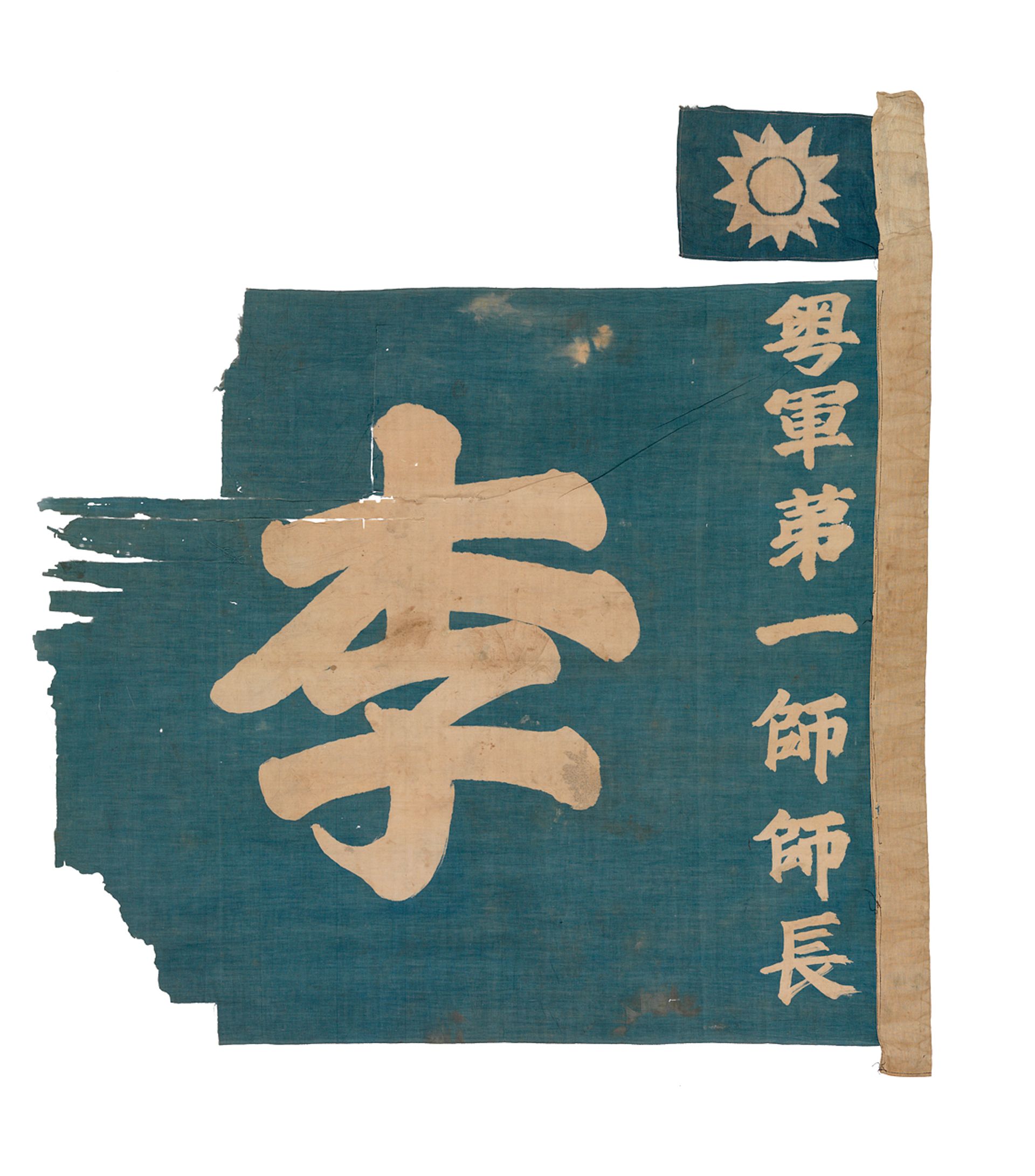 The slightly wonky batik dyed characters and cheap cotton—probably imported from Lancashire, Blyth says—suggest the flag was home made. It claims to represent Li Jishen, then commander-in-chief of China’s Guangdong Army. In 1926 the pirates sailing under the flag threatened one ship too many, and were captured by the British HMS Nessus off the coast of Southern China.