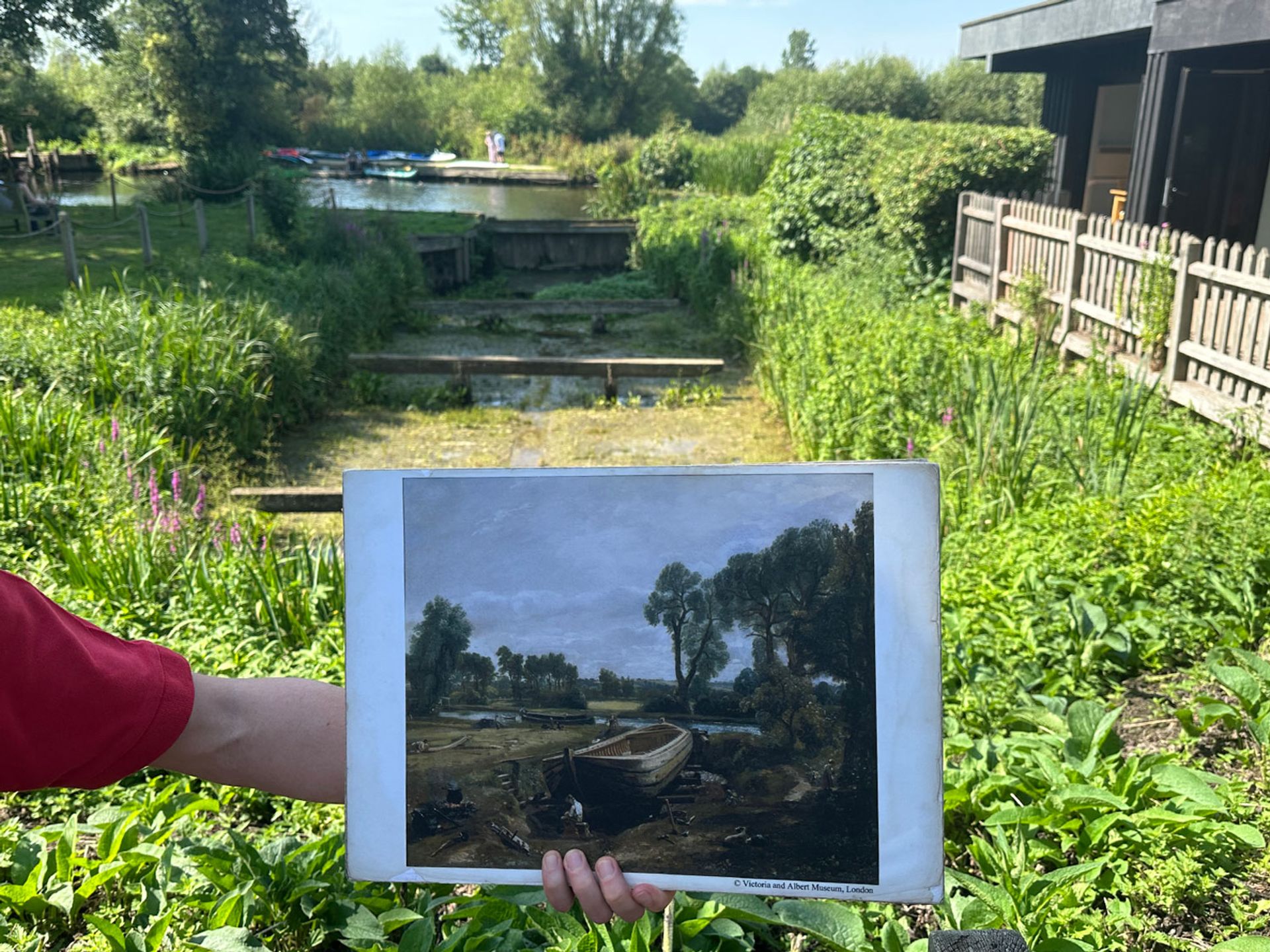 A National Trust guide demonstrates how John Constable's Boat-building near Flatford Mill (1814-15, Victoria and Albert Museum) can be compared with the scene on the banks of the river Stour today Photograph: Gareth Harris / The Art Newspaper