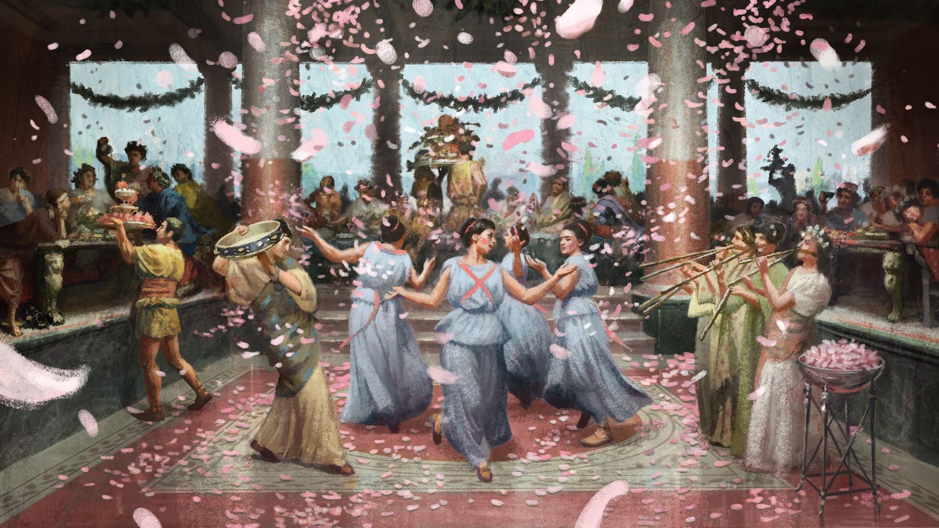 For the decadent luxury of the Romanised Jewish elite that enraged the lower classes, the artists borrowed from the Dutch artist Lawrence Alma-Tadema (1836-1912), who painted ancient sumptuousness for Gilded Age buyers. Ridley Scott also credited Alma-Tadema for the look of Gladiator.