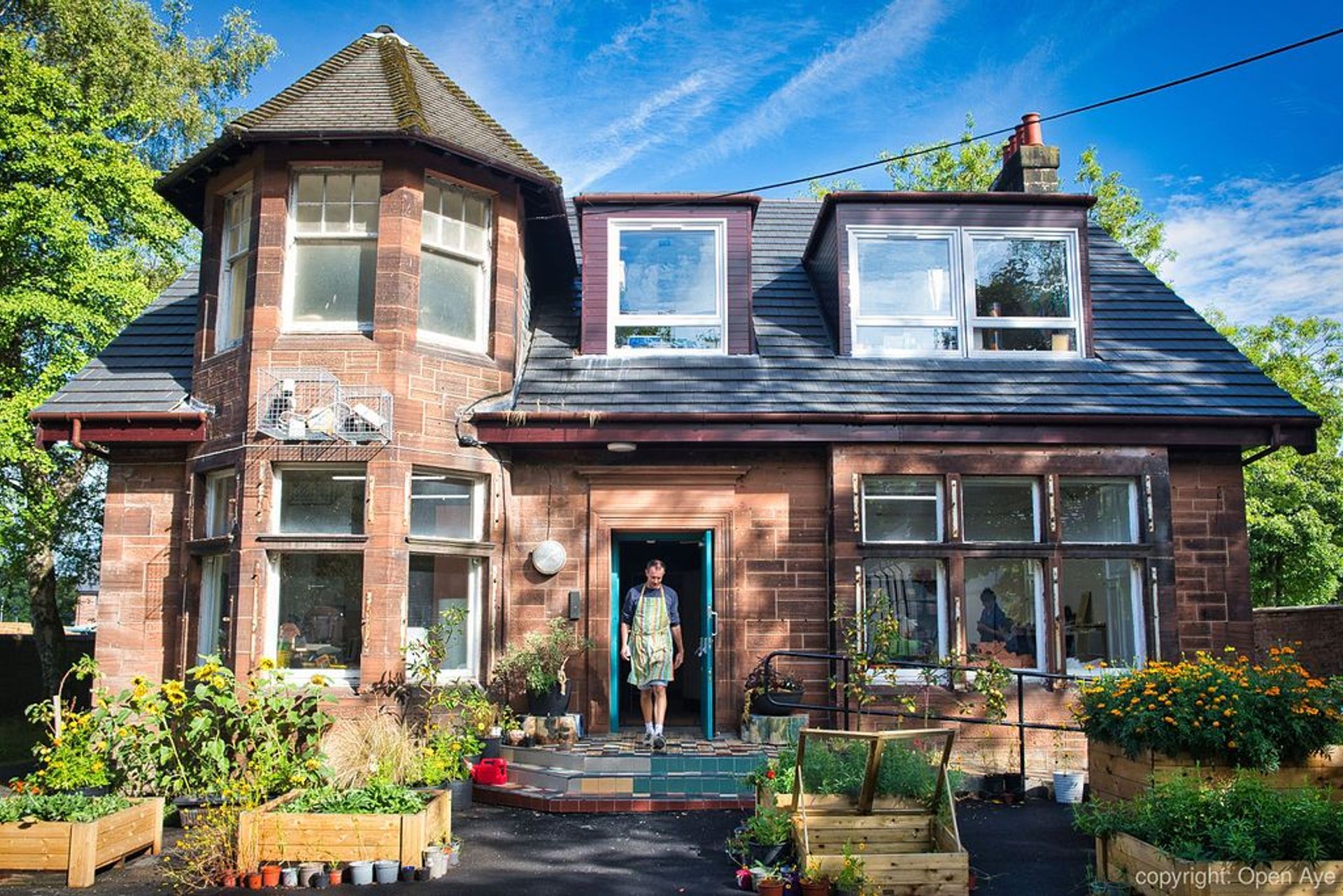 Striking evidence of this community spirit comes in the form of Sculpture House, the radical studio-cum-community workshop which Aldridge and two fellow artists, James Rigler and Nick Evans, set up two years ago in the low-income Ferguslie Park district of Paisley. This capacious but dilapidated council-owned Victorian villa has been transformed by the artist trio into studios for themselves and four other artist occupants, as well now offering myriad activities, spaces and facilities for the surrounding population. These range from after school clubs, designated Messy Materials and early Learners Clay workshops, a dye garden, and much more.