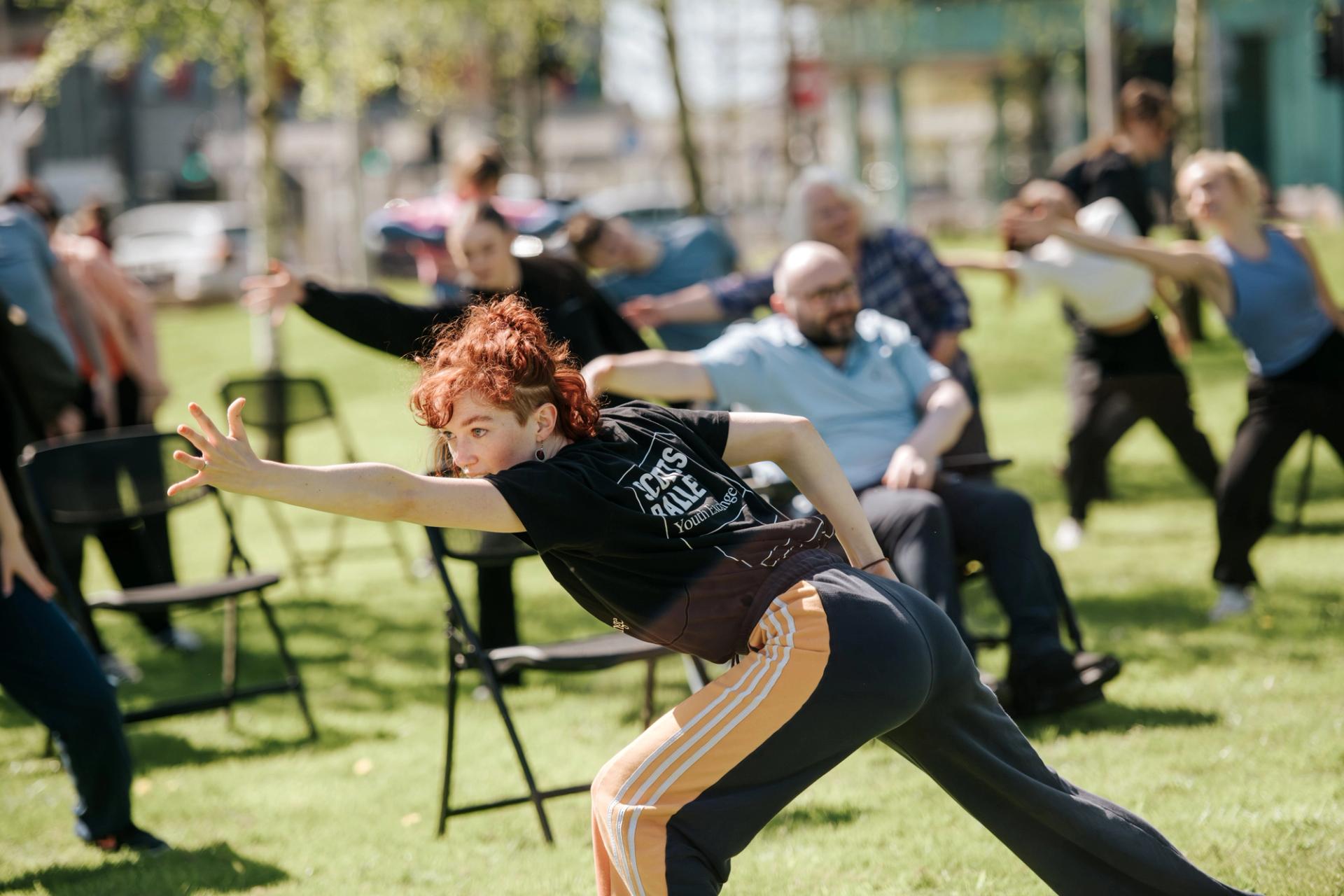 Scottish Ballet neurological health and youth initiative participants and staff during a workshop in Glasgow as part of Healing Arts Scotland