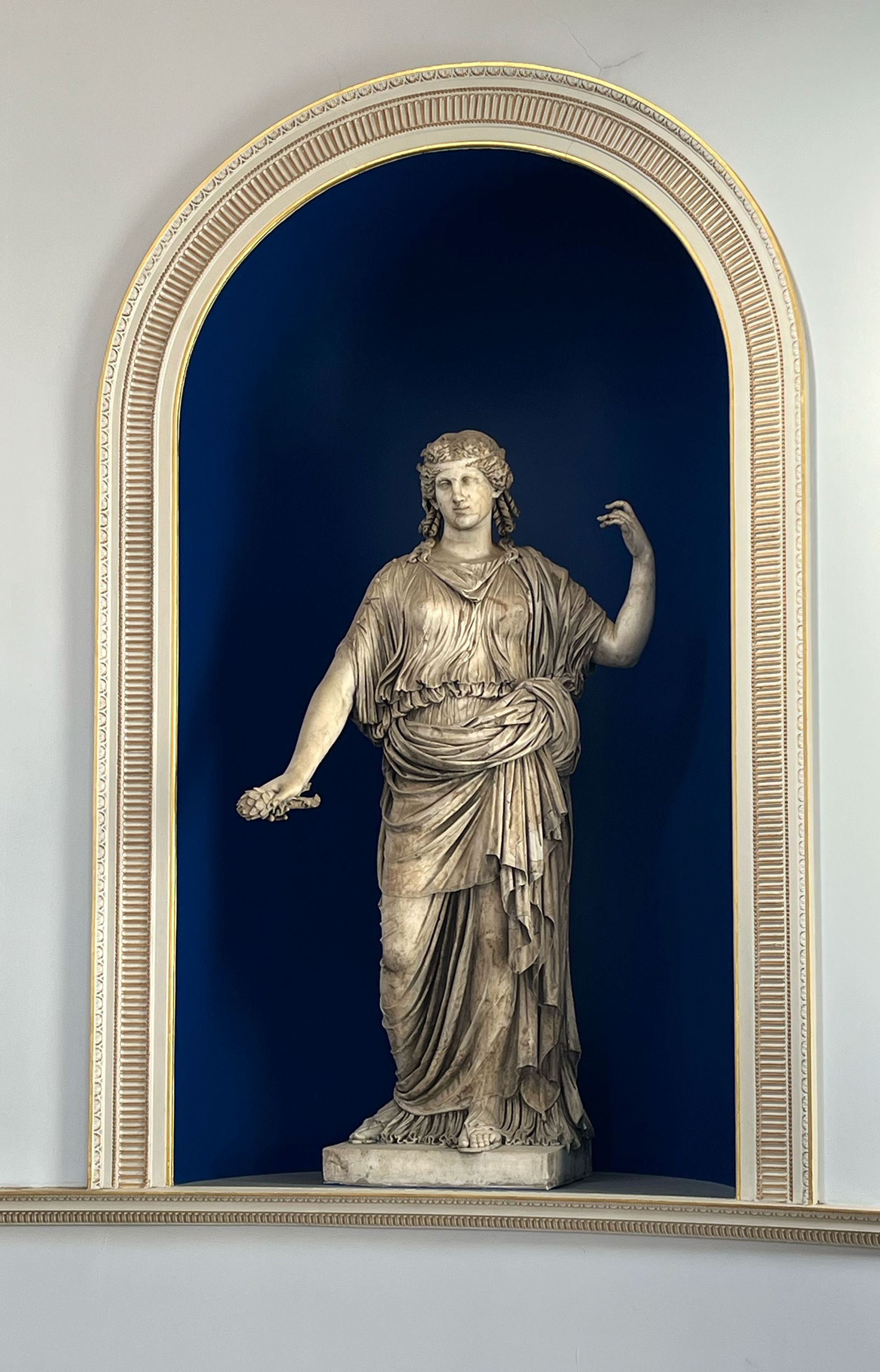 As Nicholas Penny explains in an introductory essay to the exhibition catalogue, “the marble copies of the most famous ancient Roman statues, made at enormous cost by leading Italian sculptors, have never left their niches in the Marble Hall” at Wentworth Woodhouse. Nor have the panels set into the hall’s walls designed by the great neoclassical artist and designer James “Athenian” Stuart. Likewise the statuary on the elliptical main stairs added later by John Carr of York, some of it ancient including an imposing Roman statue of Ceres, the goddess of agriculture, acquired in Rockingham’s lifetime, which is thought to have come from the excavation of Herculaneum, near Naples, in the mid 18th century.