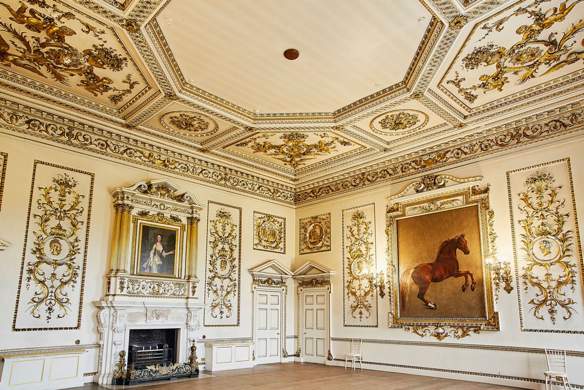 The Whistlejacket Room at Wentworth Woodhouse, shown before the installation of Beneath the Surface, with a copy of Stubbs's 1762 painting Whistlejacket in the place where the artist's masterpiece once hung Photograph: Wentworth Woodhouse Preservation Trust