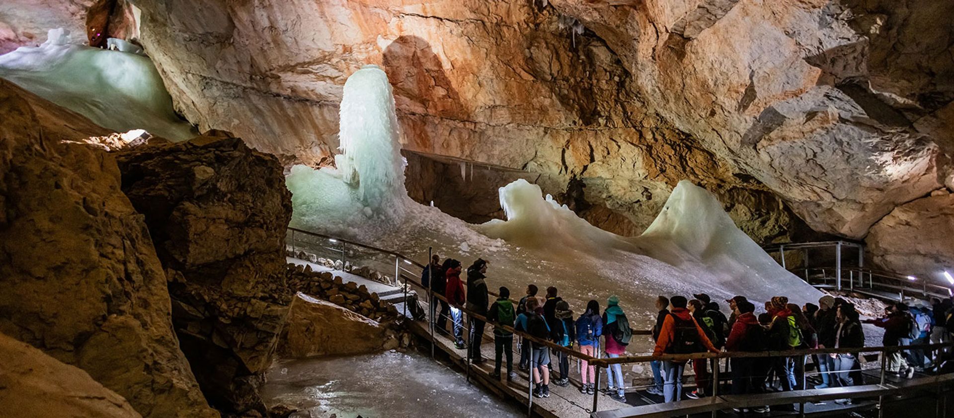 The giant ice cave at Dachstein, in Austria, where Bill Fontana's sound installation Silent Echoes will be presented in September 2024 Courtesy of Bill Fontana