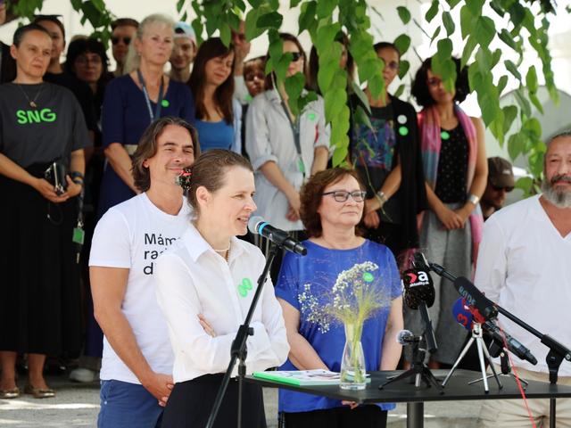 Speakers at the event included Martin Šmatlák, the rector of Bratislava’s Academy of Performing Arts, and the Slovak National Theatre actress Jana Kovalčiková, as well as representatives of student bodies and workers at the public broadcaster STVR.
