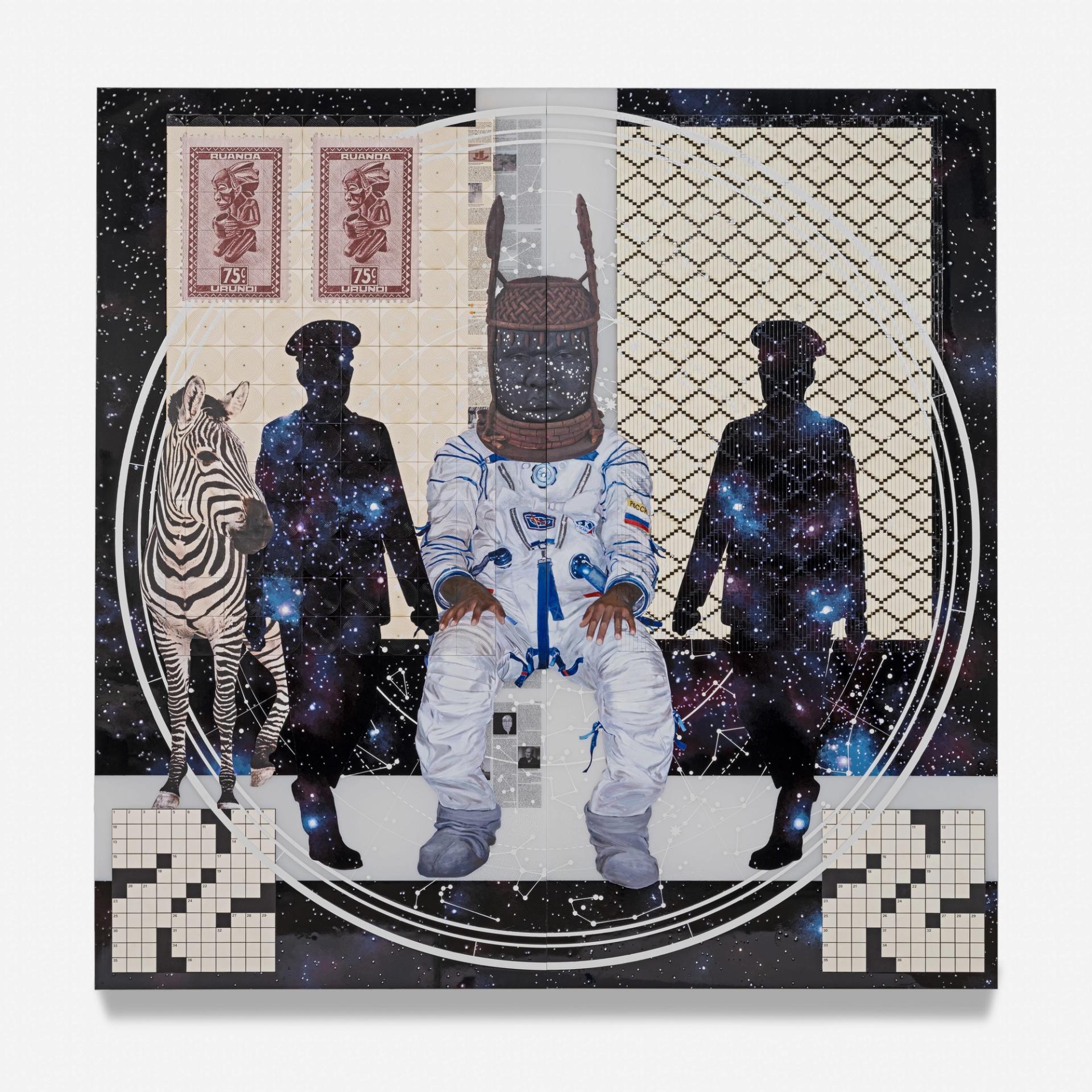 Tavares Strachan, Self Portrait as King Oba with Blue Soldiers (2023)