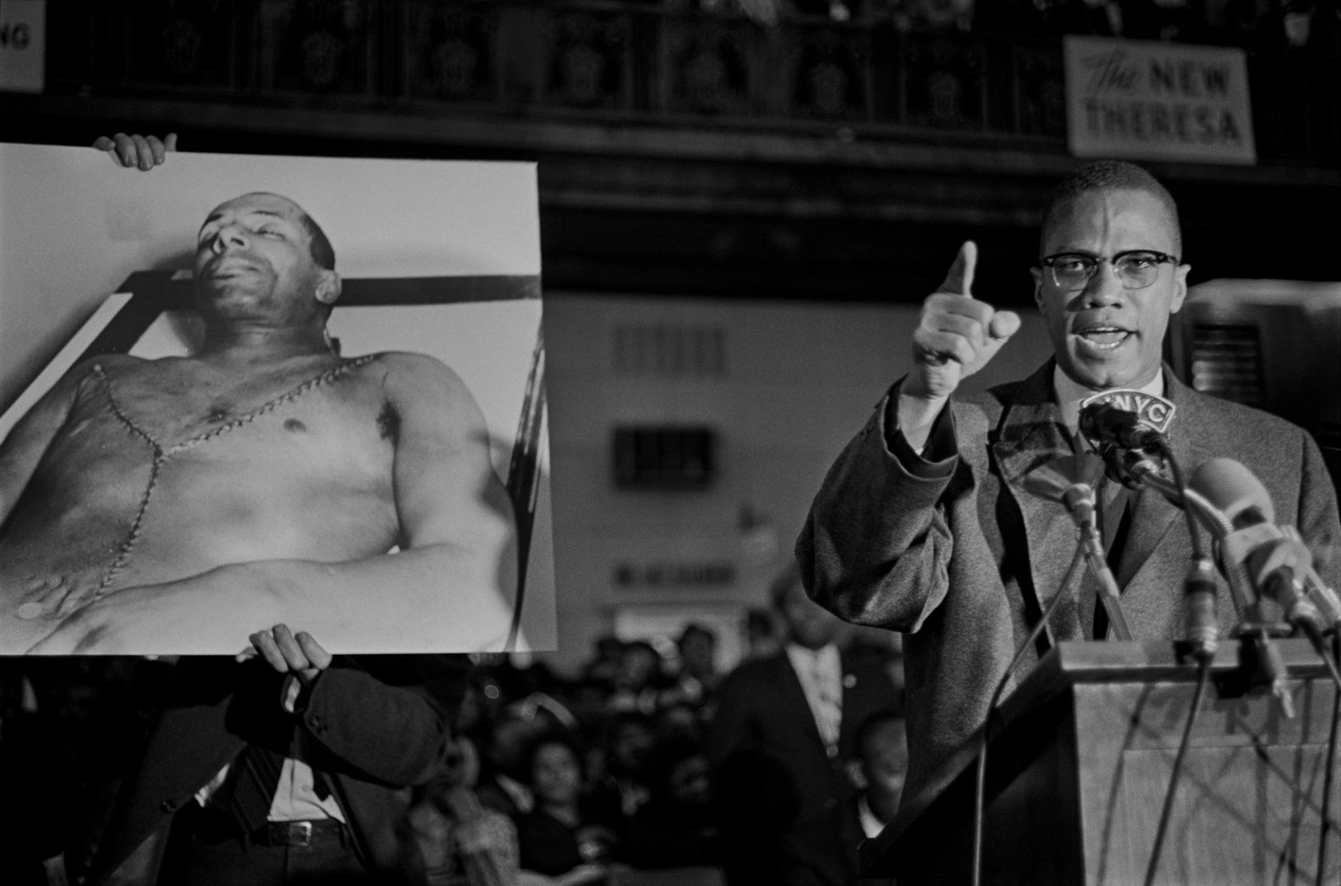 Larry Fink, Malcolm X, Harlem, NY, May 1963 (1963)