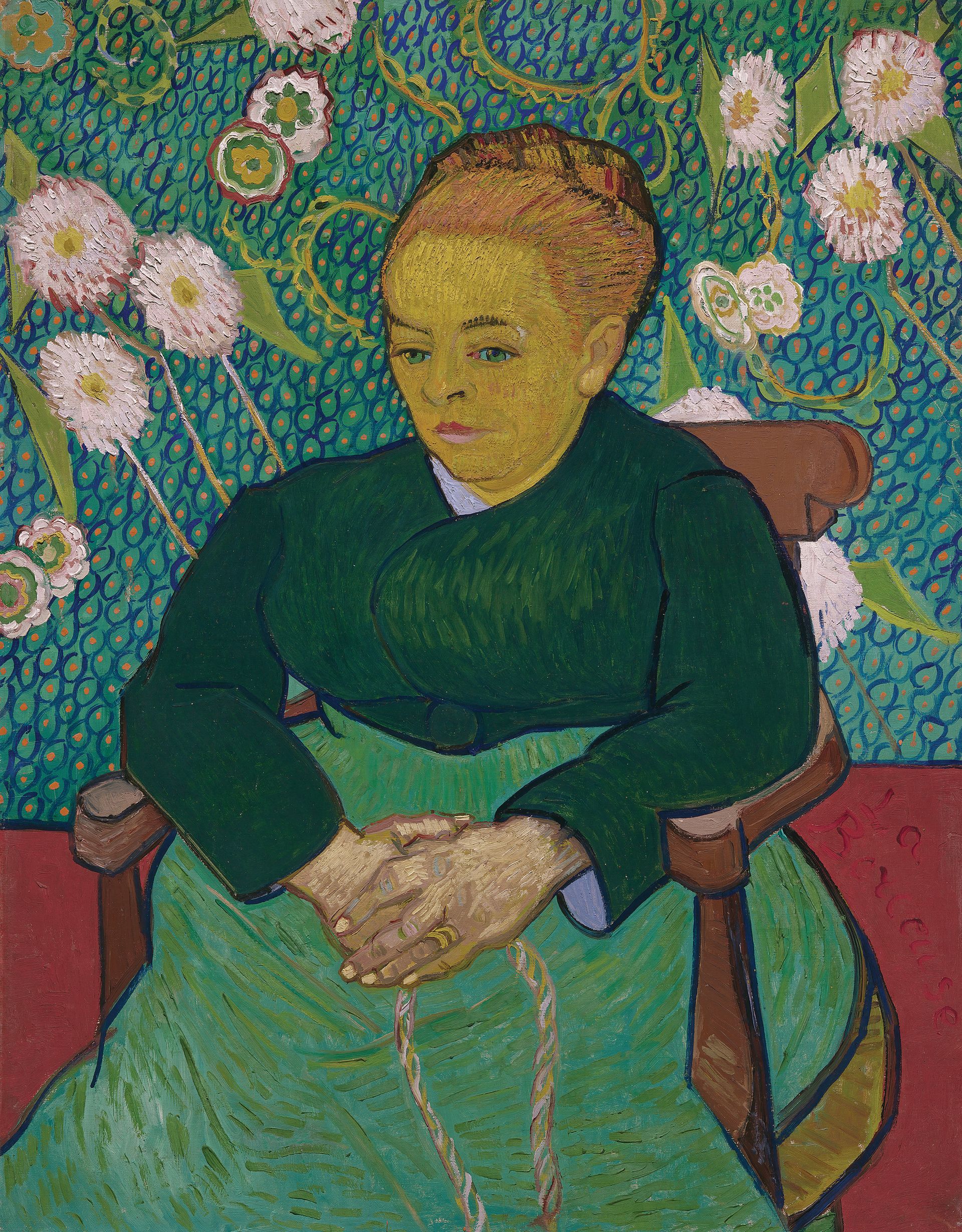 Another achievement in the “decoration” room is to present Van Gogh’s idea of a triptych, with two of the Sunflowers surrounding Madame Roulin Rocking the Cradle (La Berceuse). The National Gallery owns the Sunflowers on a yellow background, which is displayed with one of Van Gogh’s two versions on a blue background, this one on loan from the Philadelphia Museum of Art. It is the first time that Philadelphia has lent the picture since its acquisition in 1963. At the centre of the triptych is a version of La Berceuse (Museum of Fine Arts, Boston), facing us like a secular Madonna.