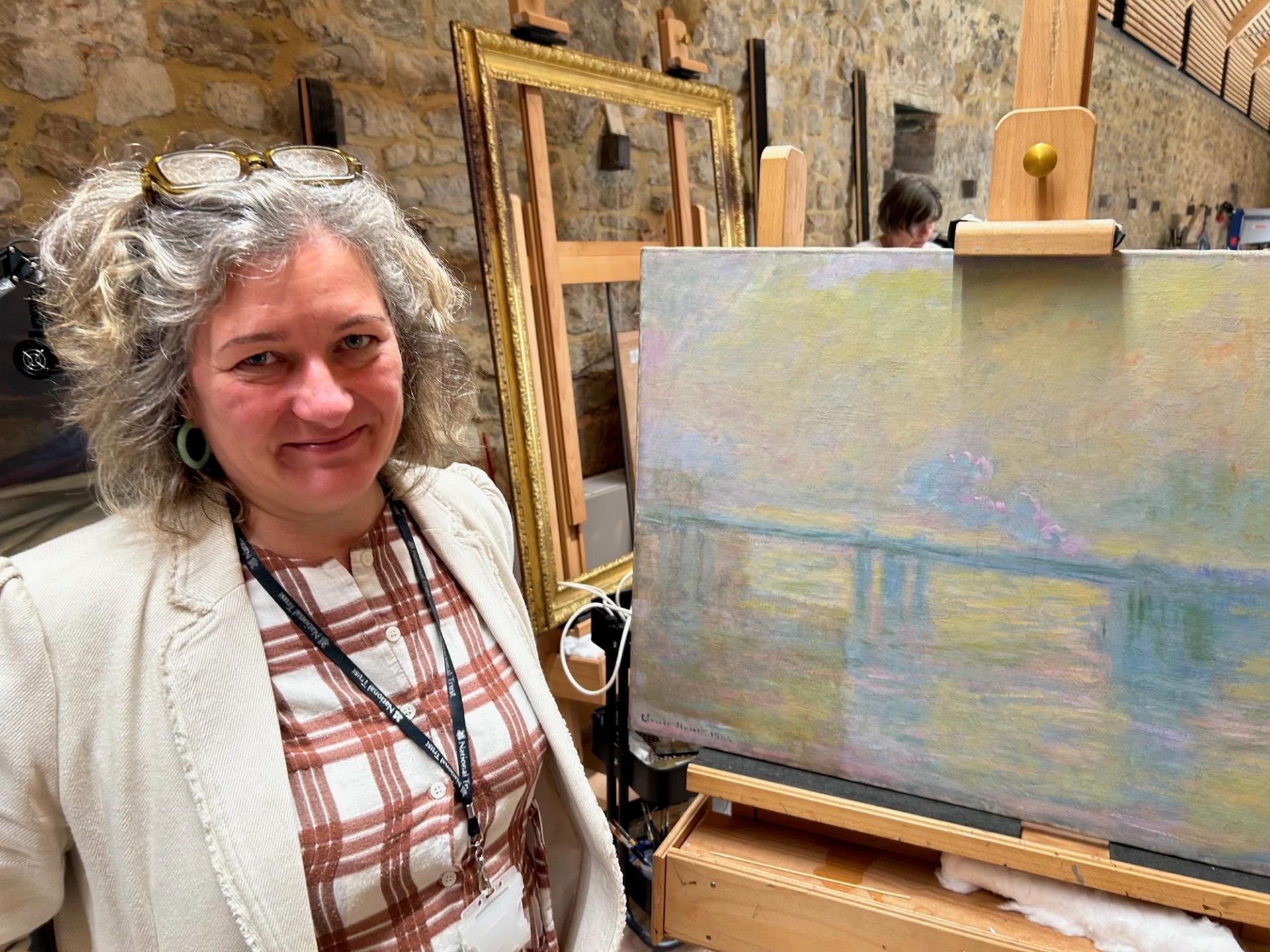 Hellen’s aim has been to bring back the painted surface to “how it would have been left by Monet” when the painting was bought from his Giverny studio in 1923. She decided against retouching the paint losses, which are minor.