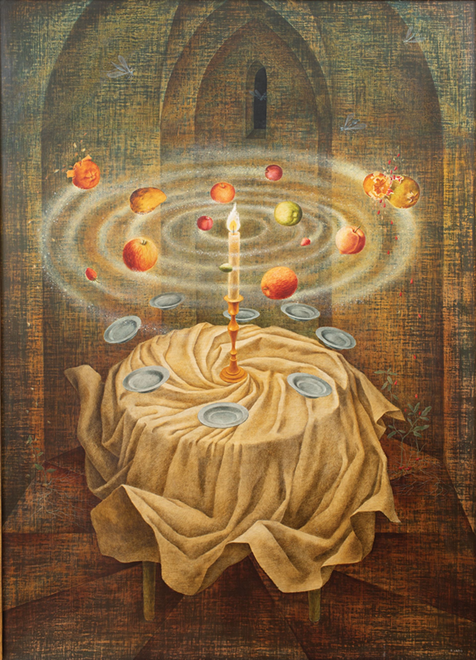 This cosmic still-life was the final painting made by the Spanish Mexican Surrealist Remedios Varo and also her largest work on canvas. The scene of a table orbited by levitating plates and fruits has been interpreted as a twist on the moralising message of the 17th-century memento mori, which reminded viewers of the inevitability of decay and death. The Art Institute of Chicago acquired the painting in June from Gallery Wendi Norris, San Francisco, a year after a major retrospective of the artist.