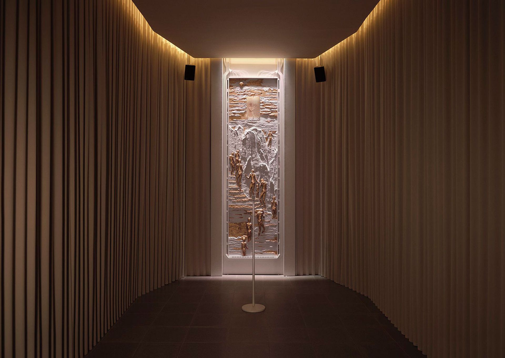 A call to interact: In the Oratory, the second chapel-like space at Serpentine North, devised by the architectural practice sub, visitors can hum or sing into a mic to explore call and response with Holly Herndon and Mat Dryhurst's AI choir model © Leon Chew. Courtesy of Serpentine