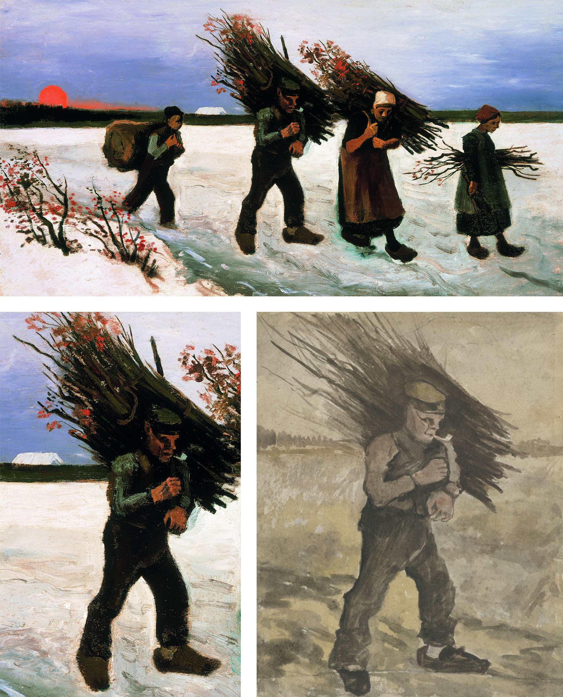 AUTHENTIC (below left): Van Gogh's Wood Gatherers in the Snow (detail)