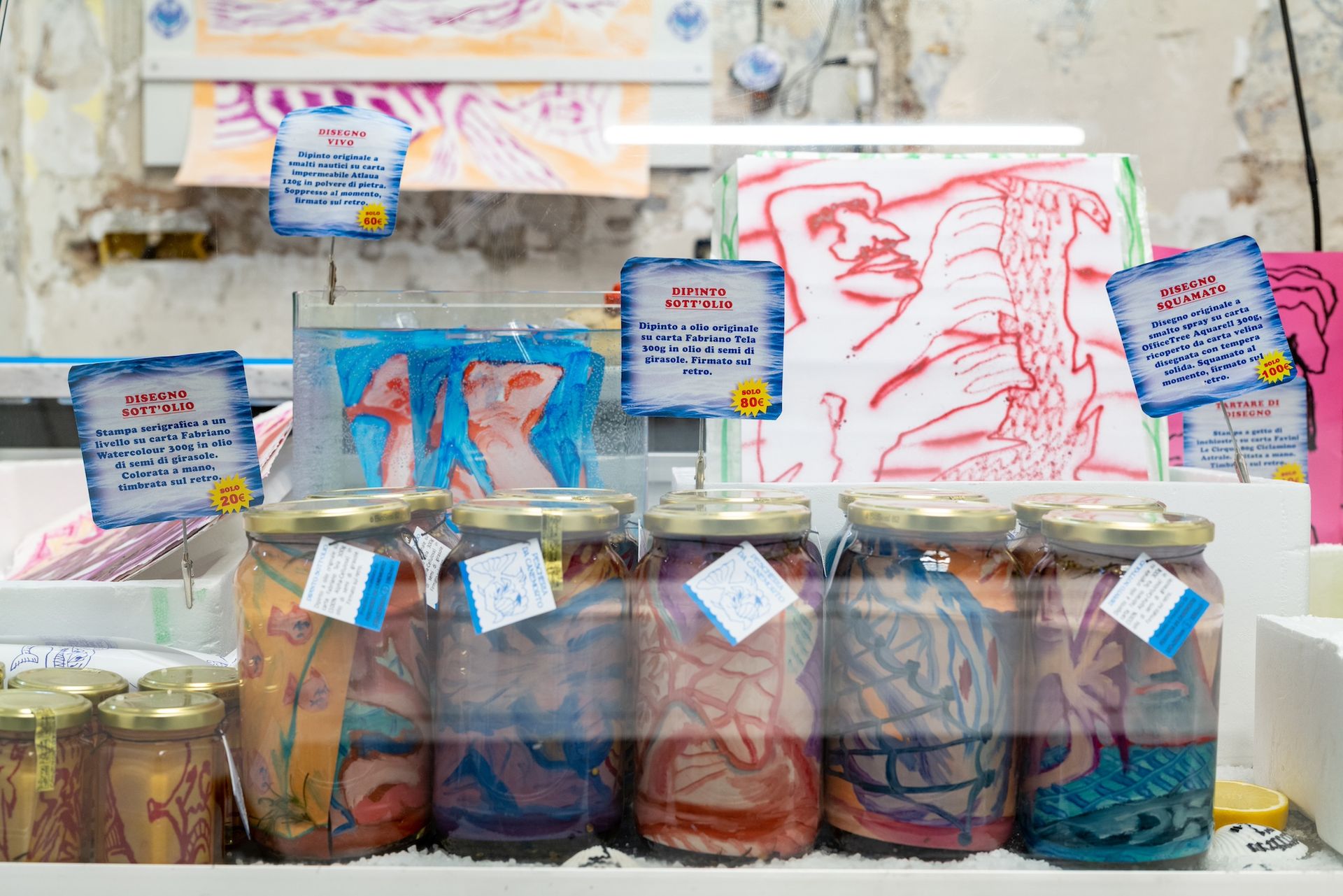 The first iteration of Canemorto Fish Market drew inspiration from Milan’s historical claim to having the freshest seafood in Italy, ironic considering the city sits around 100 miles inland. In addition to honouring Canemorto’s blend of fact and fiction, the format also highlights similarities between hawking fish and selling art.