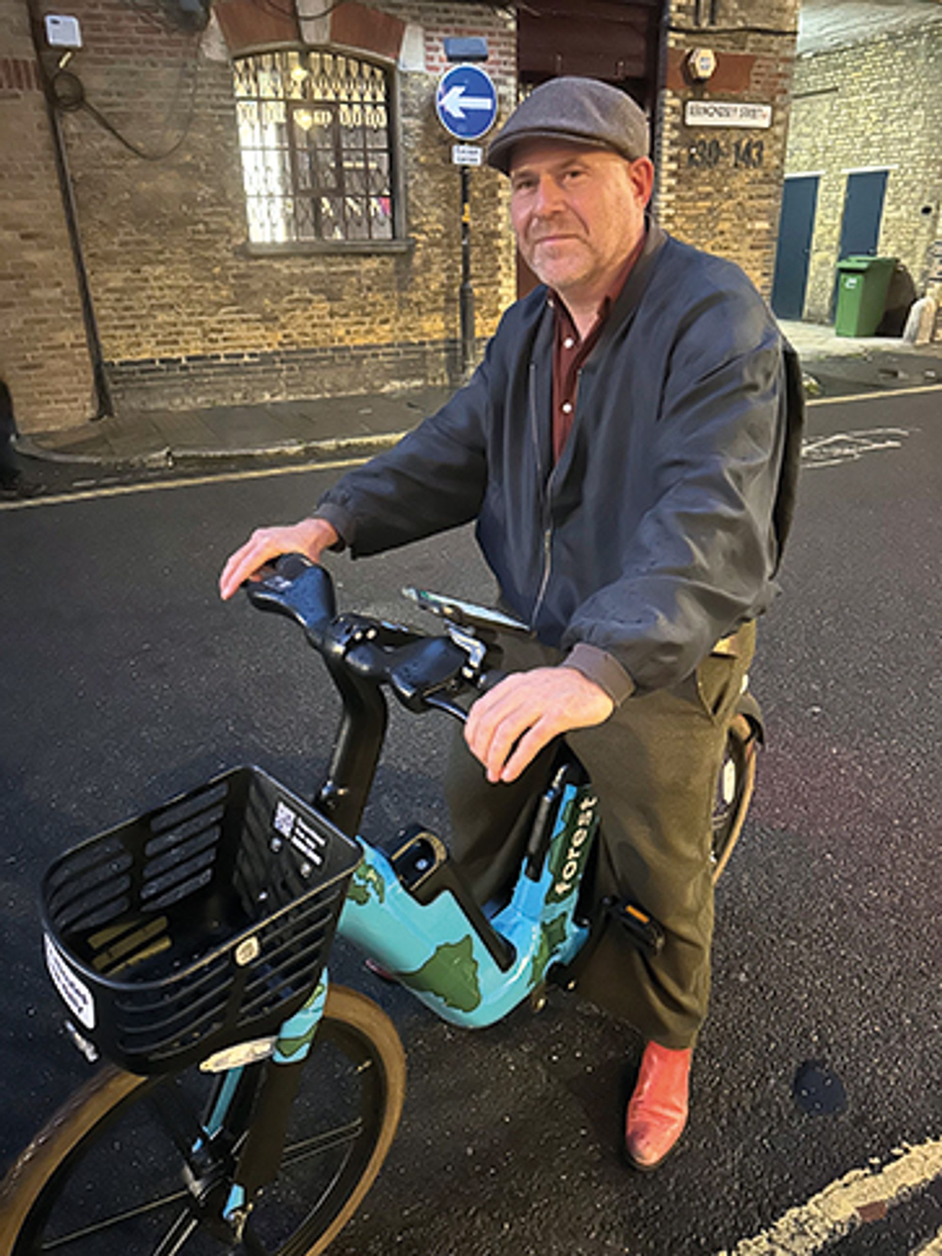 Two wheels good (unless it’s raining): Marc Spiegler gets on his bike Gareth Harris