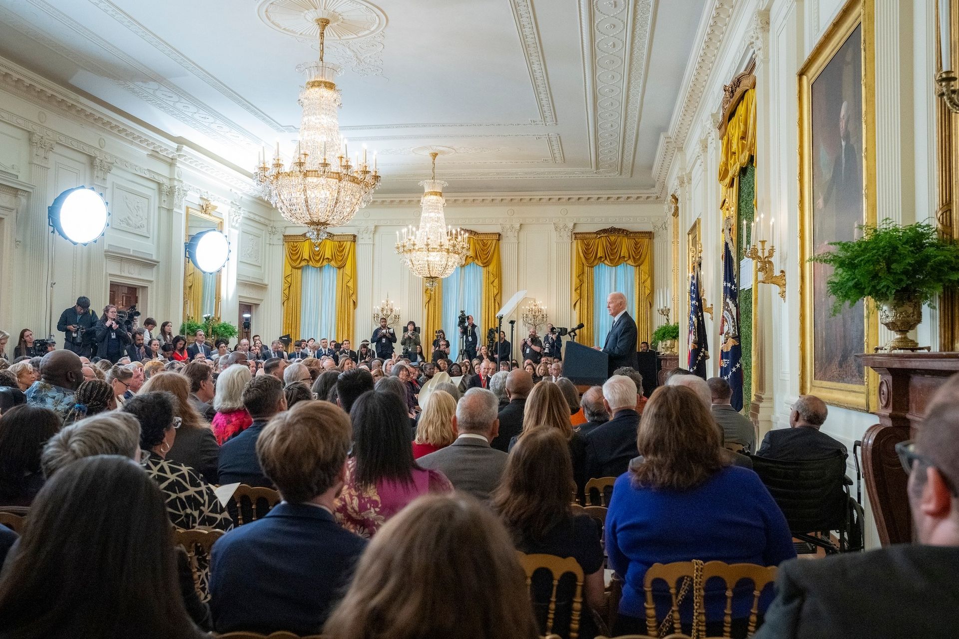 US President Joe Biden speaks to National Medal of the Arts and National Medal of the Humanities recipients and their families at the White House on 21 October Photo courtesy the White House