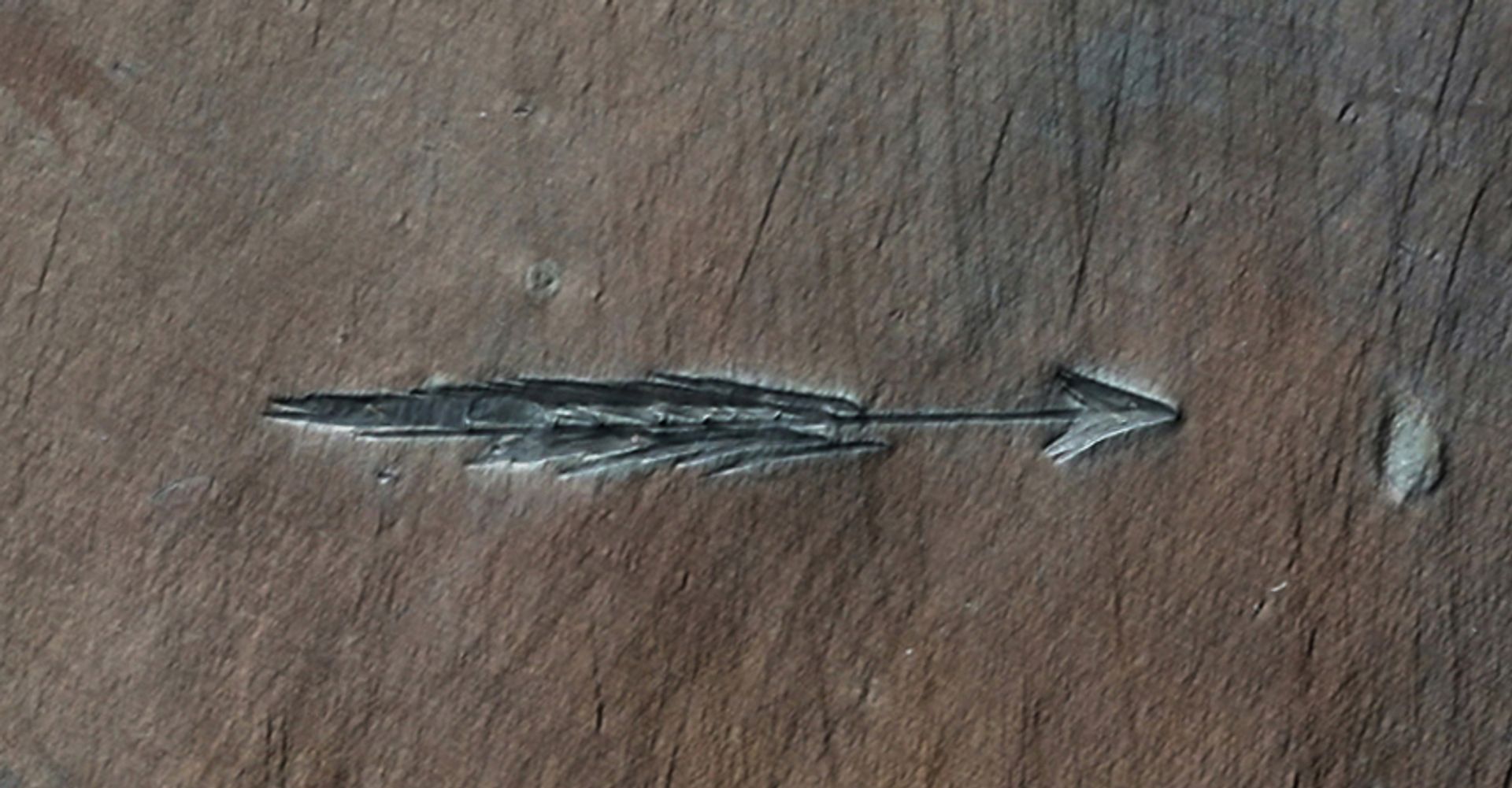 The engravings attributed to Blake include hatching, cross hatching, motifs and curves made with burins and dry point compasses, practice pieces by an apprentice learning the house style. However some are distinctly more Blakeian, including short shafted arrows—a motif which occurs in Blake’s later work, including his famous paintings for his singular version of Milton’s Paradise Lost. The scans also revealed most of a human face—lips, eyes and part of a nose —previously completely invisible to the naked eye.