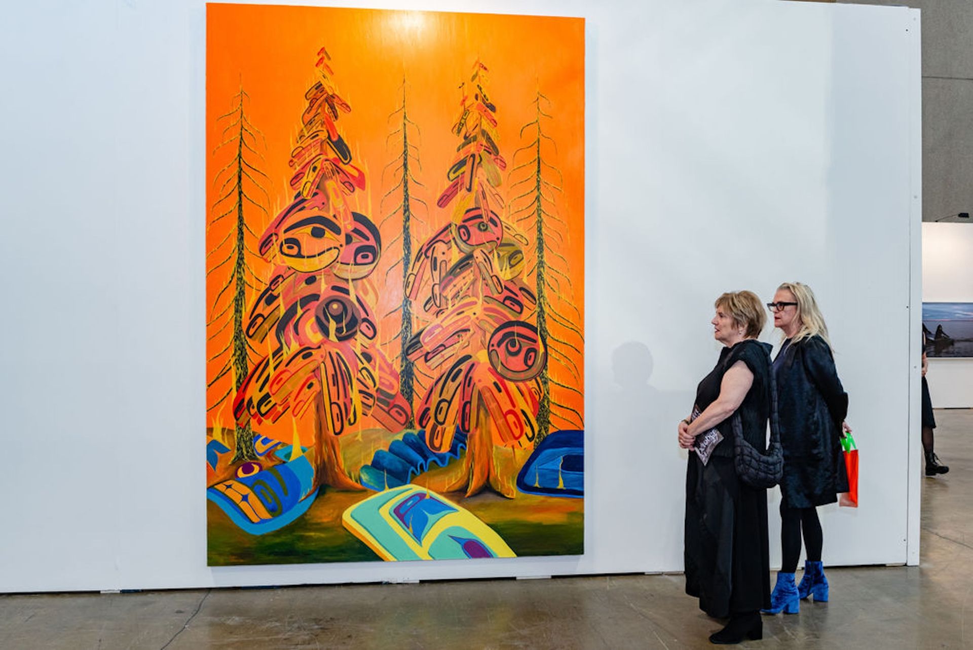 During a reception on Thursday night to benefit the McMichael Gallery, the room was abuzz with well-heeled collectors exchanging information about the next big thing. They eagerly awaited announcements by the gallery’s executive director and chief curator, Sarah Milroy, about its acquisitions from the fair. They included the 2024 work Aanzinaago (Caught in a Transformation) 01 by the Native Art Department International, acquired from the stand of the Toronto- and Montreal-based gallery Patel Brown.