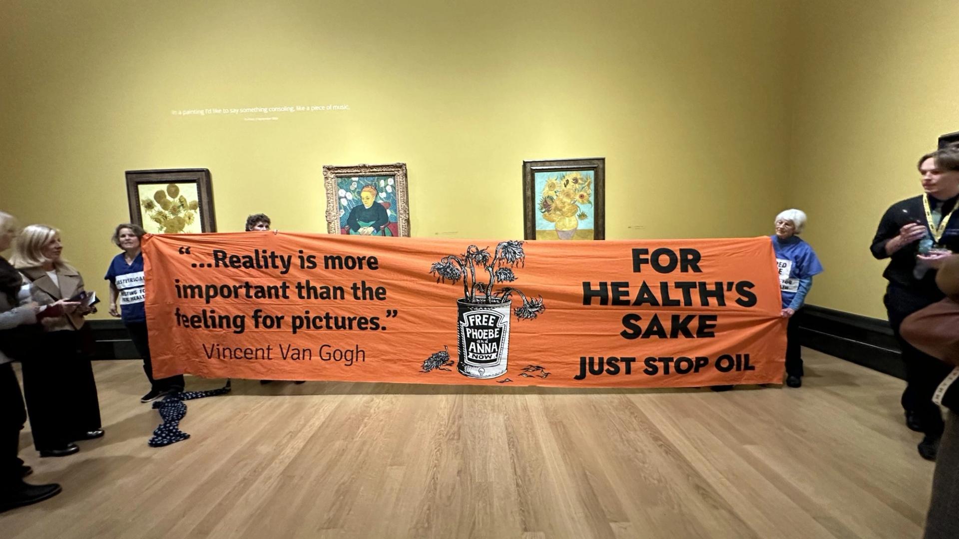 Meanwhile last week (18 October), three Just Stop Oil protestors unfurled a banner at the National Gallery in London’s exhibition Van Gogh: Poets and Lovers, in front of two of the artist’s Sunflowers paintings. The protestors were calling for the release of Phoebe Plummer and Anna Holland, who were jailed in September after throwing soup at Sunflowers (1888)—located at that time in the National Gallery‘s permanent galleries—in October 2022.