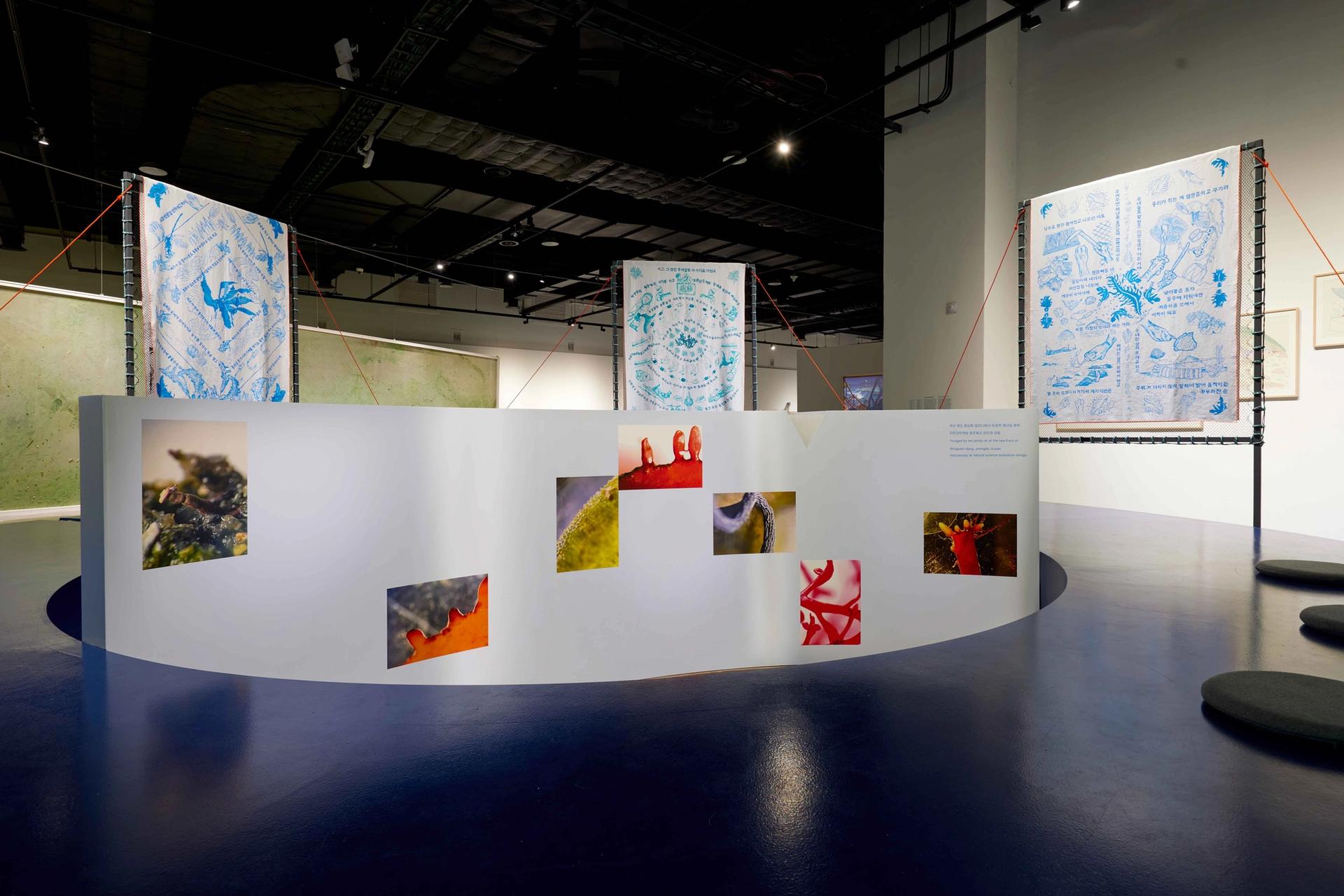 At the 2022 Busan Biennial, their sculptural installation was made from the agar agar growing around the neighbouring coastline. It was shaped by a deep engagement with the rituals and spiritual beliefs of the dwindling local population of local haenyeo, female divers working on the South Korean island of Jeju.