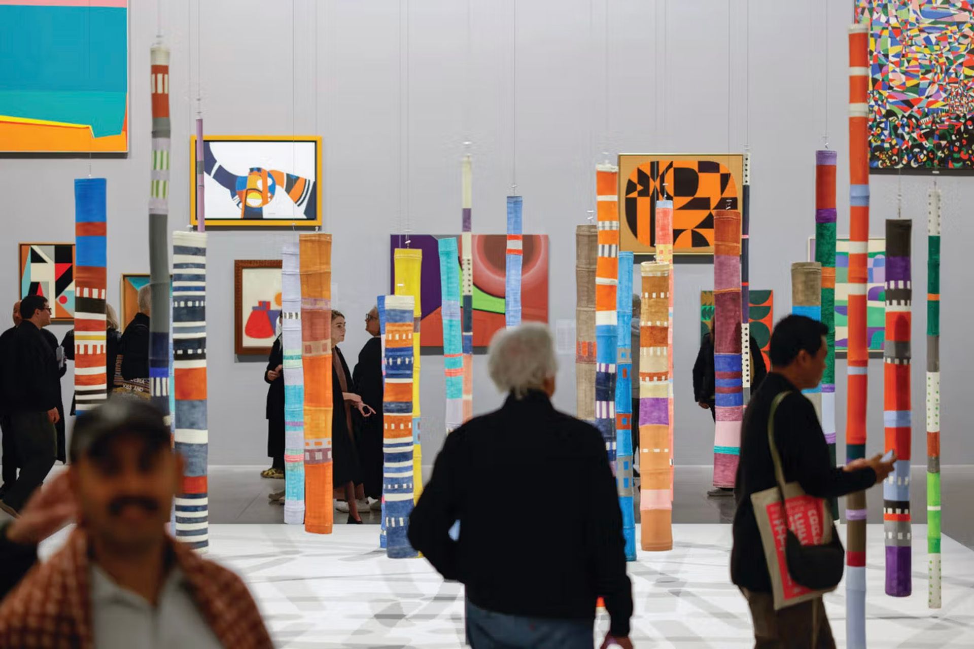 At the Australia pavilion, the Golden Lion winner Archie Moore created an “intensely moving” genealogical chart—in white chalk on black walls—tracing his Kamilaroi, Bigambul and British ancestry going back 65,000 years. Meanwhile Jeffrey Gibson, the first Indigenous artist to have a solo show in the US pavilion, blends Native American traditions with text, textiles and themes of identity and globalism, creating a riotously colourful and joyful art oasis.