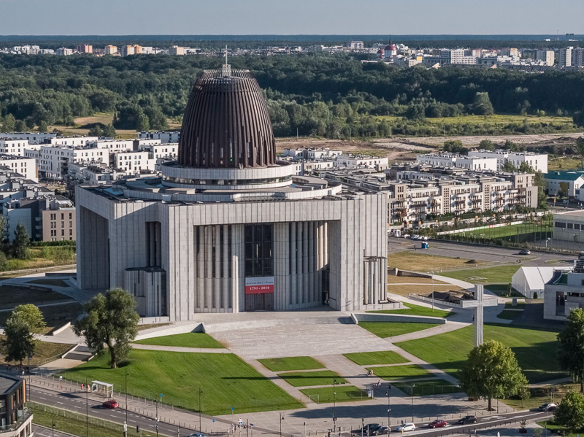 View of the Museum of John Paul II and Primate Wyszynski, at the top of Temple of Divine Protection, Warsaw